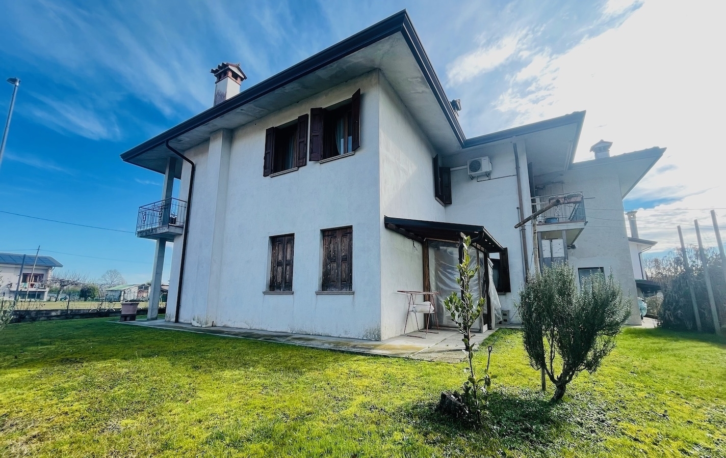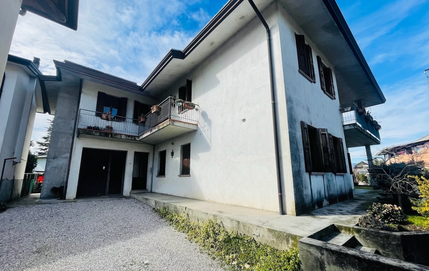 A francenigo proponiamo una proprieta' dalle ampie potenzialita' abitative e progettuali, ideale per chi ricerca spazi generosi, indipendenza e versatilita' d'utilizzo. Si tratta di una villa disposta su due livelli, attualmente suddivisa in due appartamenti indipendenti, ma facilmente unificabili in un'unica abitazione grazie alla presenza della scala interna di collegamento.l'unita' al piano superiore, completamente ultimata e abitabile, sviluppa circa 175 mq e offre ambienti ariosi e confortevoli: un grande e luminoso soggiorno con stufa in maiolica e accesso a due terrazzi vivibili, cucina separata abitabile con ulteriore terrazzino, doppio climatizzatore giorno e notte, due camere, bagno e una stanza ad uso cameretta o studio. A completare il piano, una camera matrimoniale indipendente con bagno privato, soluzione perfetta per ospiti (anche in affitto), familiari, assistenti oppure per uno studio professionale riservato. Dispone inoltre di tetto completamente rifatto con installazione di impianto fotovoltaico da 6 kw.il piano terra, di circa 115 mq, si presenta allo stato grezzo, consentendo massima liberta' di personalizzazione; puo' essere ultimato come seconda unita' abitativa autonoma oppure integrato all'abitazione principale come zona accessoria.completano la proprieta' garage e locale cantina, inseriti in un lotto di circa 700 mq. Inclusa nella vendita anche una terza unita' abitativa indipendente e distaccata di circa 100 mq su due livelli, completamente da ristrutturare, ideale come dependance, investimento o progetto abitativo aggiuntivo. Su quest'ultima sono gia' stati eseguiti interventi di impermeabilizzazione del tetto con nuova guaina e grondaie.una soluzione rara per metrature, indipendenza e possibilita' di sviluppo, perfetta per famiglie numerose, soluzioni genitori-figli o per chi desidera coniugare abitazione e investimento nello stesso contesto.