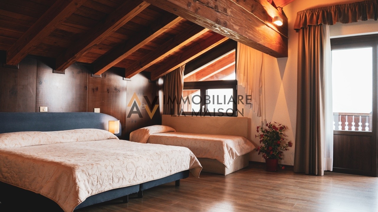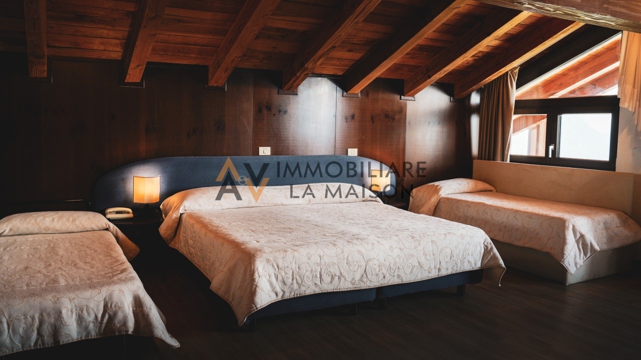 L'aev -la maison immobiliare propone in vendita un hotel sito a gressan in frazione pila, una delle migliori stazioni sciistiche della valle d'aosta, con oltre 70km di piste che si estendono da 1800m a 2700m di altitudine.la struttura si trova in una posizione strategica perché posta sulle piste da sci, accanto alla seggiovia chamolè e a pochi passi dalla funivia aosta-pila che collega il centro città con gli impianti.pila non offre solamente attività durante il periodo invernale, ma anche in quello estivo, come escursioni a piedi e anche per il donwhill visto che la località offre molti tracciati e ogni anno si riuniscono per la coppa europa.costruito seguendo le linee architettoniche tradizionali, l'hotel ricorda il tipico hotel di montagna che si inserisce perfettamente nell'ambiente circostante e gode di una vista completa su tutta la valle.l'hotel dispone di: 51 camere, di cui una suite, tutte dotate di bagno privato con doccia, tv led, minibar e la maggior parte dispongono anche di balcone; ampia hall con zona bar all'ingresso caratterizzato da ampio soggiorno, zona lettura e tavolo da biliardo; ristorante di 290mq con dehors e con accesso diretto alle piste; area benessere; sala per eventi privati e ampio parcheggio.pila non offre solamente attività durante il periodo invernale, ma anche in quello estivo, come escursioni a piedi e anche per il donwhill visto che la località offre molti tracciati e ogni anno si riuniscono per la coppa europa.