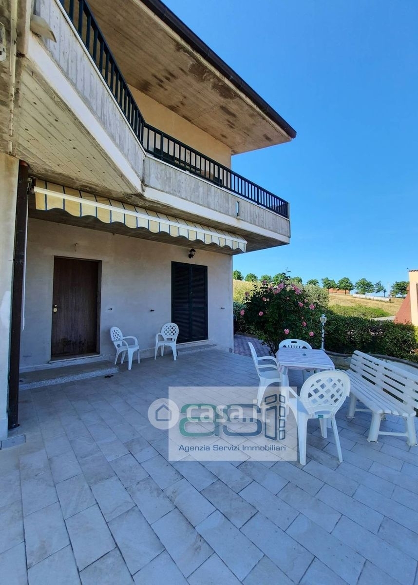 Tortoreto prima collina, proponiamo in vendita villa indipendente con splendida vista mare, contornata da natura, pace e tranquillità. La villa sorge su un lotto di 1150 mq con ampio giardino ricco di alberi da frutta e fiori. Dotata di impianti di illuminazione e irrigazione con possibilità di realizzare una piscina. la villa si sviluppa su due livelli, al piano terra con ingresso indipendente in fase di costruzione da terminare. Attraverso la scalinata esterna è possibile arrivare al primo piano composto da ingresso, ampio salone luminoso, camino e comoda cucina con affaccio in terrazza con vista mare. La zona notte dispone di 3 camere matrimoniali con parquet e balconi, cameretta/studio e doppi servizi. La villa si trova in buone condizioni, ottima come abitazione per più famiglie; adatta anche per chi volesse realizzare una struttura ascopo turistico. Arredata. Classe energetica = g
