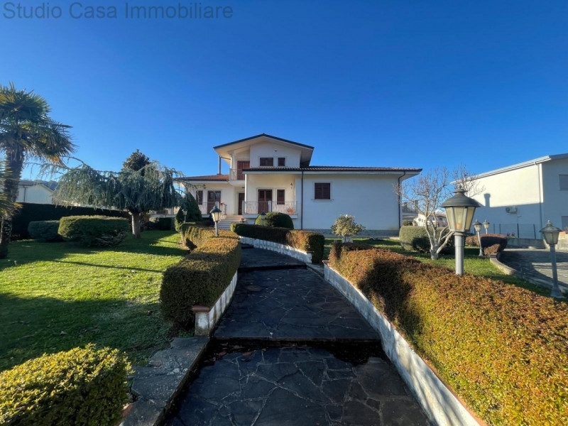 Proponiamo in vendita un'esclusiva villa indipendente situata nel cuore di sarconi, in una zona residenziale tranquilla e panoramica. Questa moderna villa si distingue non solo per le sue ampie metrature di 494 mq, ma anche per lo stato manutentivo impeccabile e il curato spazio esterno privato che circonda l'intera abitazione.l'immobile si sviluppa su più livelli con una distribuzione funzionale degli spazi: **zona giorno:** l'ingresso conduce a un luminoso salone di rappresentanza caratterizzato da eleganti pavimenti in ceramica. è presente una seconda area living accogliente dotata di un camino classico e ampie vetrate che garantiscono luminosità naturale durante tutto il giorno.**cucina:** la cucina è spaziosa, arredata in stile rustico-classico ed è dotata di accesso diretto ai balconi, rendendo questo ambiente perfetto per cene conviviali.**zona notte:** le camere da letto sono ampie, rifinite con pregiato parquet e arredi classici che conferiscono calore all'ambiente domestico. **servizi:** il bagno principale è rifinito con materiali di alta qualità, completo di vasca idromassaggio ideale per momenti di relax dopo una lunga giornata. all'esterno la villa è immersa in un giardino privato piantumato con alberi da frutto e ornamentali; uno spazio ideale dove trascorrere piacevoli pomeriggi all'aperto o organizzare eventi sociali. Gli accessi sono facilitati grazie a un ingresso pedonale e carrabile protetto da cancello in ferro battuto che porta a una corte pavimentata in pietra elegante.a completare questa proprietà esclusiva vi è un grande garage al piano terra con doppia basculante capace di ospitare comodamente più veicoli. Inoltre, la presenza di una tavernetta con cucina in muratura, cantina , studio, altri ambienti garantendo cosù tranquillità assoluta nella vita quotidiana.la villa presenta infissi in legno con vetrocamera e persiane oscuranti; il riscaldamento autonomo tramite radiatori in alluminio assicura comfort durante i mesi più freddi dell'anno. Lo stato della casa rende possibile l'immediato utilizzo senza necessità di ulteriori interventi strutturali o estetici.non perdere quest'opportunità unica! contattaci subito presso la nostra agenzia per maggiorni informazioni o per fissare una visita.