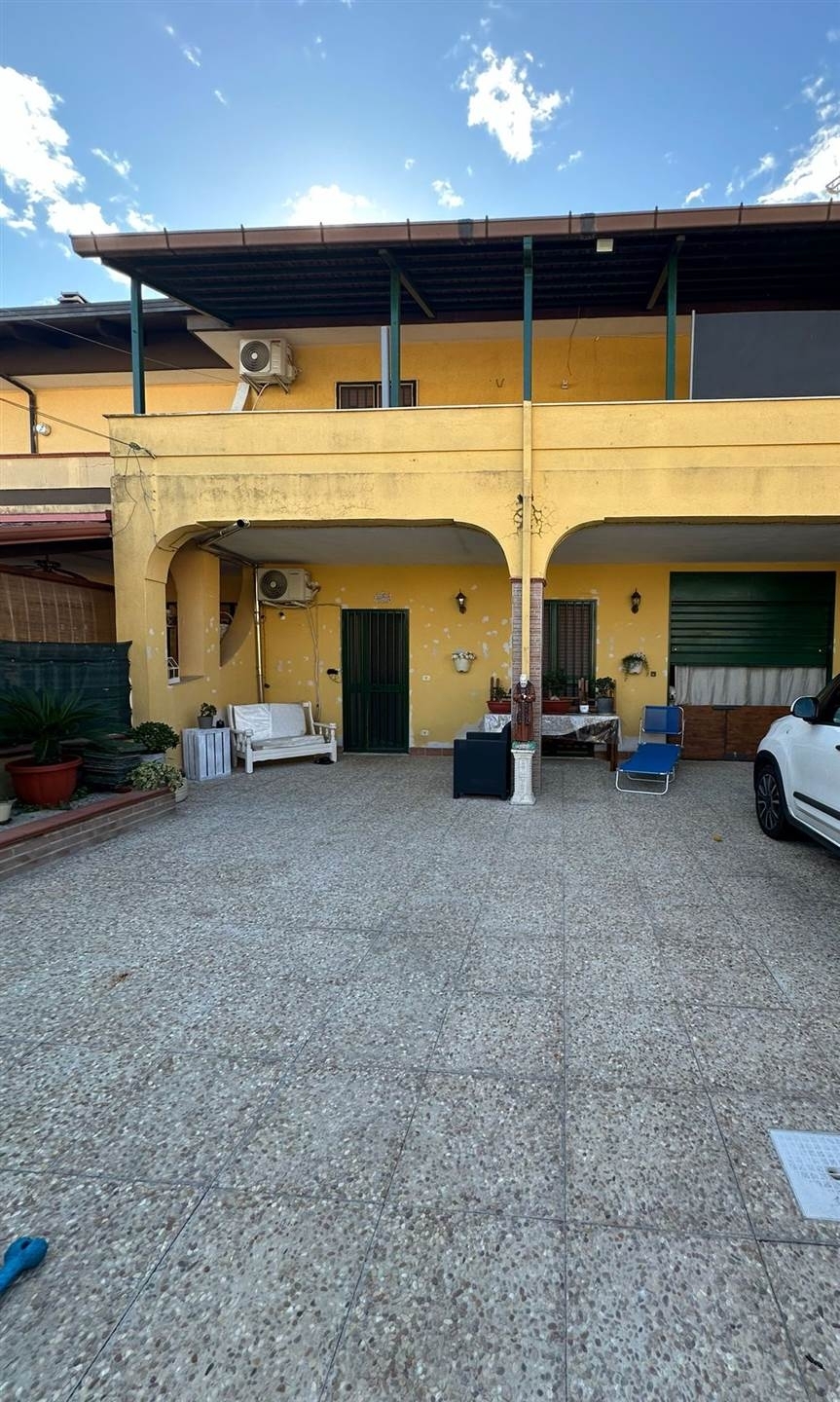 Castel volturno, località domiziana, proponiamo in vendita in viale privato e residenziale, nelle immediate vicinanze ai servizi di prima necessità come farmacia, supermercato, bar, fermata dell'autobus, ecc... Villa a schiera cosù composta: al piano terra soggiorno, cucina, disimpegno, bagno con doccia e garage con accesso interno ; al primo piano tre camere di cui una con balcone e due con terrazzino e bagno con vasca. Inoltre l'immobile dispone di un cortile pavimentato nella parte anteriore e posteriore di circa 150mq totali. classe energetica: g