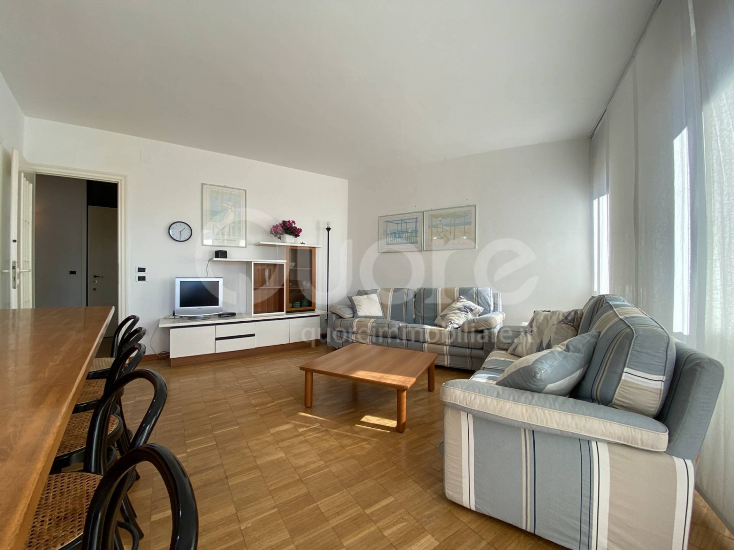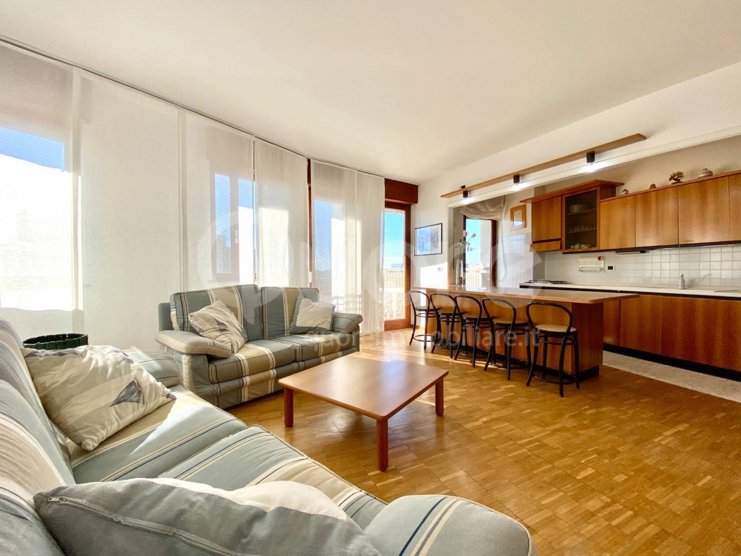 Spazioso tricamere, ubicato in una palazzina signorile, a lignano pineta vicino al centro pedonale e a 150 metri dalla spiaggia.l'appartamento, ubicato al 6° piano, è composto da: ingresso, ampia e luminosa zona giorno open space con cucina a vista, terrazzo con vista panoramica sulla pineta e sul mare. Zona notte composta da disimpegno, camera da letto matrimoniale con terrazzo, camera da letto doppia con terrazzo, bagno finestrato con box doccia, cameretta con bagno privato. Dotato di impianto di climatizzazione in zona giorno e in zona notte. Viene venduto completo di arredo. il condominio è stato recentemente oggetto di un rifacimento delle facciate e si presenta in ottime condizioni generali. E' dotato di due ascensori, servizio portineria e splendido giardino con zona parcheggi.appartamento disponibile dal superfici:appartamento 96mqterrazze 16 mq
