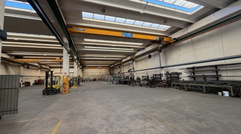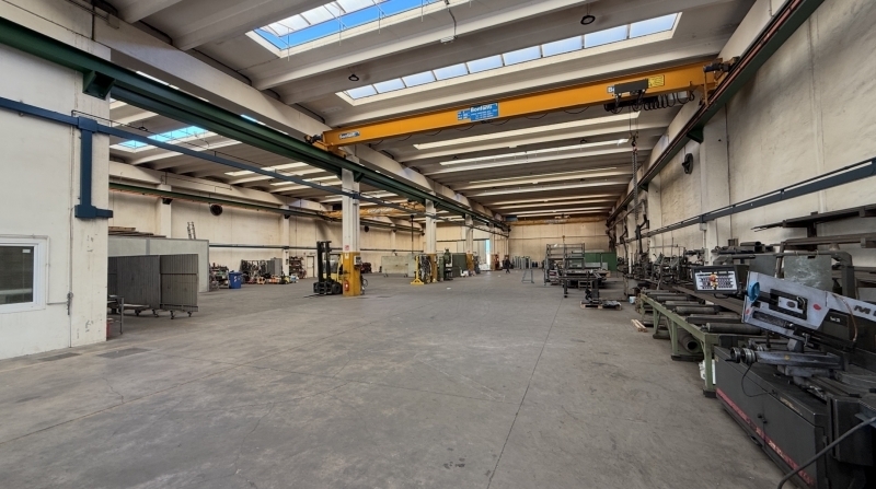 Capannone industriale/artigianale con 3 carroponti da 5t (2 omis e 1 bonfanti), inserito in un lotto di 5.500mq completamente recintato, con ampia area di manovra per la logistica e la movimentazione dei bilici. Il capannone misura 1.630mq ed è dotato di due portoni automatizzati fronte/retro (4,6mq x 4,5mq ). Al suo interno troviamo gli uffici disposti su due livelli, in perfette condizioni: piano terra: uffici, archivio, magazzino, spogliatoi, mensa e servizi. Piano primo: presidenza, due uffici indipendenti, archivio, sala riunioni e servizi.caratteristiche: ottimamente manutenzionato, impianti a norma, accesso per bilici, 3 carroponti da 5 t, uffici climatizzati, sala server, spogliatoi per il personale, allarme volumetrico e perimetrale, videosorveglianza, cancelli automatizzati. Lotto completamente recintato.metrature: capannone 1.630mq; uffici pt 106mq; uffici p1 174mq; 11 posti auto scoperti 154mq; 19 posti auto coperti 266mq, area di manovra 1700mq, lotto recintato 5500mq classe energetica = in attesa