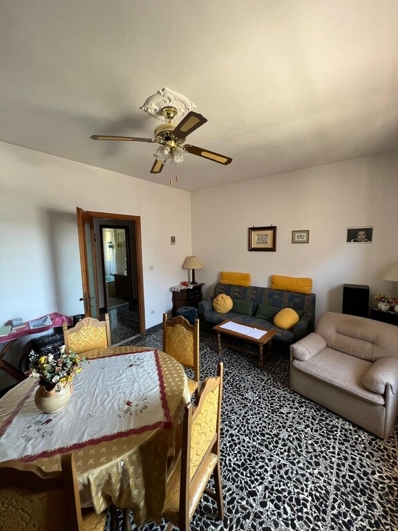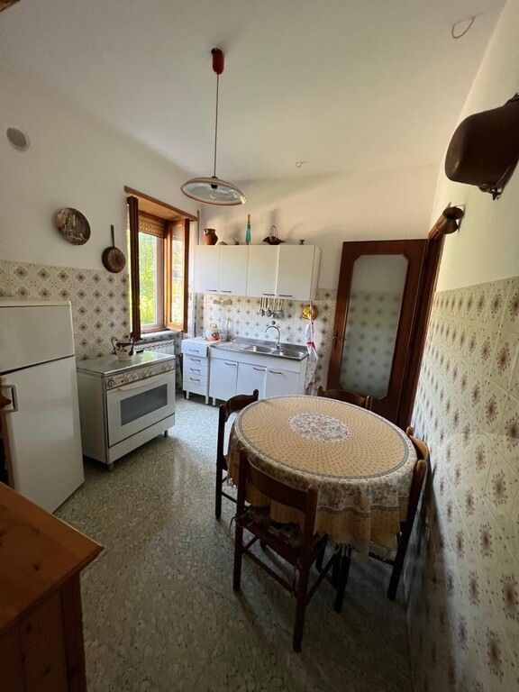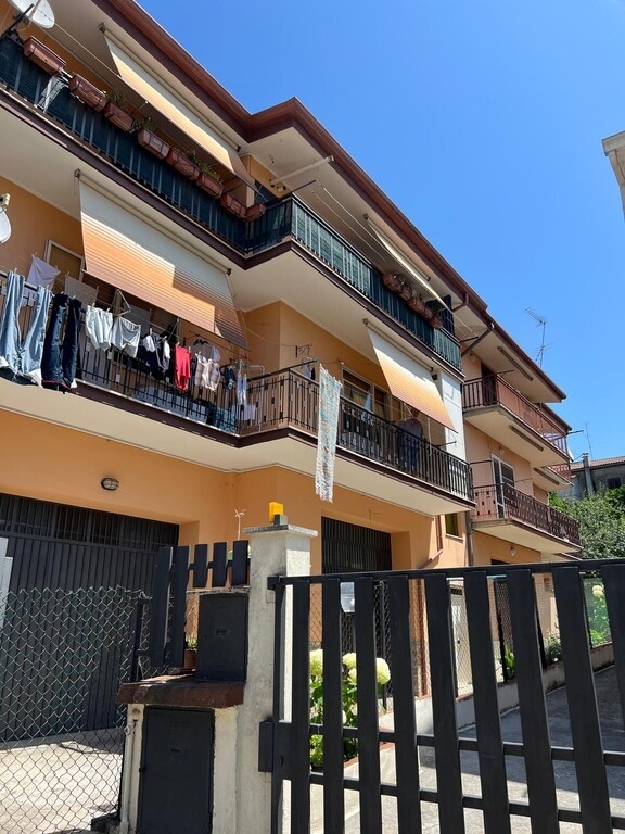 Appartamento posto al primo piano di circa 90 mq composto da ingresso, cucina, salone, 2 camere, bagno e balcone. L'immobile si presenta in condizioni abitabili anche se finiture risalgono agli anni 80 quindi per raggiungere gli standard odierni ha bisogno di opere di ammodernamento. Le camere si presentano abbastanza ampie e comode. Al piano terra della palazzina c'è un locale di proprietà di circa 45 mq utilizzabile sia come garage che come deposito. La posizione è invidiabile dato che l'immobile è ubicato a circa 100 mt dalla casilina e si trova ad 1 km dal centro del paese. L'accesso all'immobile è dato da un piccolo cortile condominiale con cancello, il garage e l'immobile sono collegati da una porta interna.