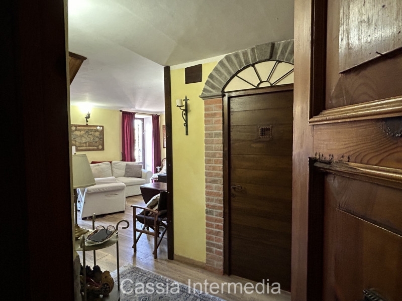 Nepi centro storico. Appartamento in una delle torri medievali di nepi (1540 circa), 110 mq catastali. La scala di accesso circolare con i gradini realizzati con mattoncini verticali è una caratteristica delle costruzioni dell'epoca. L'unità immobiliare su due piani si avvale di due accessi alla scala condominiale, per tramite del portoncino principale al primo piano e di un ulteriore piccola porta al secondo piano. Completamente ristrutturata nel 2017. Internamente composta da un ampio salone con camino, una cucina abitabile con balcone e un bagno. Salendo troviamo due ampie camere da letto e altro bagno, uno studio e una cabina armadio. impiantisca a norma. Facciata restaurata nel 2023. Rivestimenti delle pareti interne in pietra tecnica della new stone e serramenti della meta group. Impianto di riscaldamento e climatizzazione autonomo elettrico (splitter) ed a gas (caldaia e radiatori). Camino perfettamente funzionante. Cancelletto di sicurezza per bambini sulla scala interna. Braccio per carrucola sul balconcino salone per carichi (es: legna da ardere). Selezione di materiale per manutenzione (ceramiche, ecc.) ammobiliata come da foto (ad eccezione del divano e piccole cose). Completa di cucina, elettrodomestici (lavastoviglie e lavatrice compresi) e tv (tre schermi, salone e camere da letto). Due balconi. Le finestre si affacciano al di sopra degli edifici circostanti, garantendo luminosità e privacy. Terrazzo condominiale.