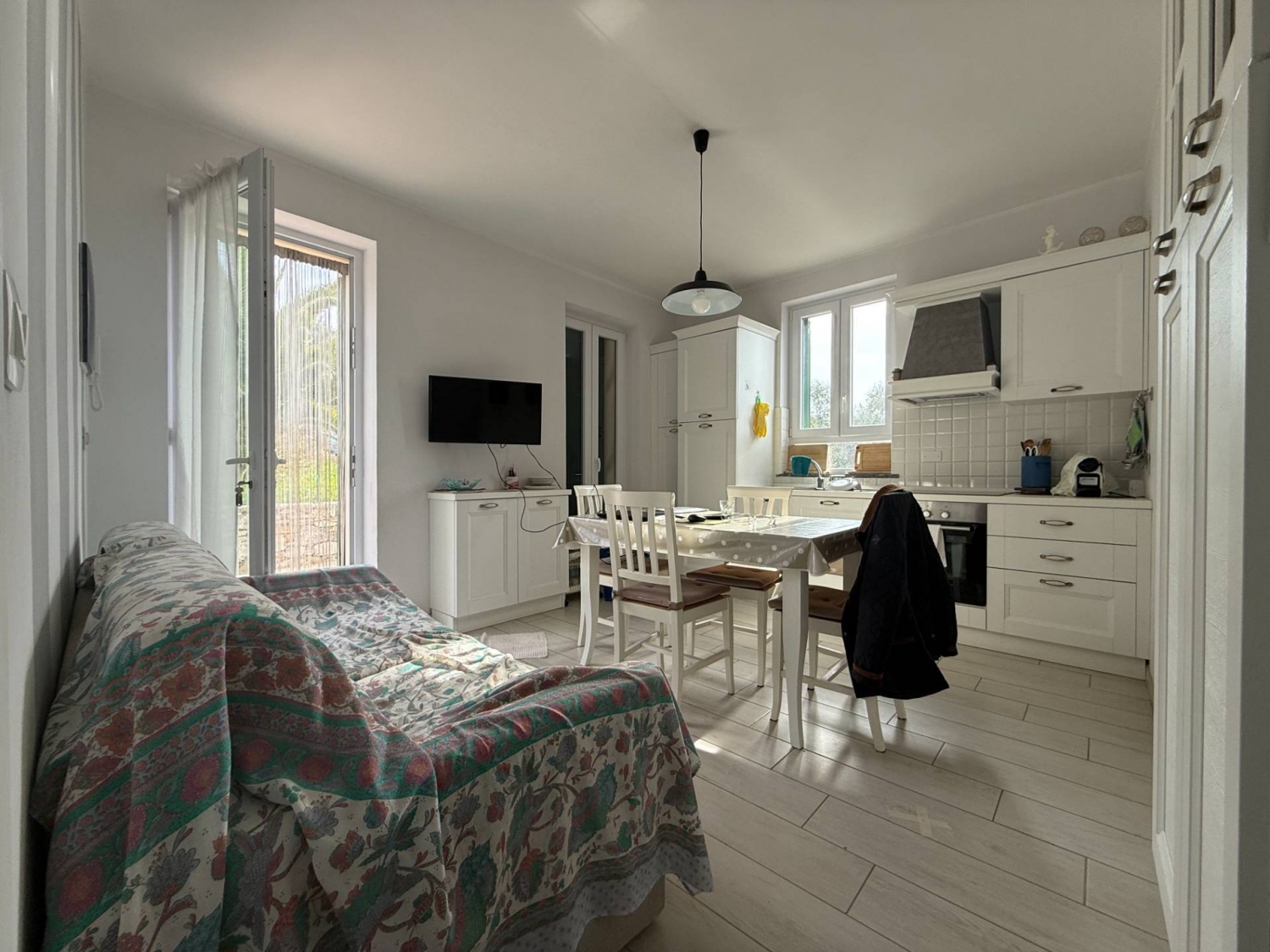 Diano castello - grande trilocale in stabile di nuova costruzionein contesto residenziale panoramico, soleggiato e silenzioso, ad appena 5 minuti di guida dalle spiagge di diano marina e nei pressi immediati di tutti i servizi di diano castello, sorge al civico n. 3 di via rebaudi un elegante condominio di nuova realizzazione, caratterizzato dalla presenza di impianti di ultima generazione, da ottimi standard qualitativi di rifinitura e, non per ultimo, da una posizione strategica, appartata ma comoda ad ogni necessità e luogo d'interesse.le unità sono tutte indistintamente dotate di posto auto privato, balconi e/o giardini, affacci aperti, infissi in pvc con vetrocamera, cappotto termico esterno ed impianti, sia idraulico sia elettrico, certificati alla regola dell'arte.la maggior parte di queste intravedono il mare e la città di diano marina, a corredo di un'offerta molto allettante.l'appartamento in oggetto è situato al piano terreno, ed ha una superficie catastale di 67 mq ripartiti come segue ;ingresso su ampio soggiorno con cucina a vista, grande camera matrimoniale, seconda camera matrimoniale, doppi servizi finestrati con box doccia (uno dei quali dotato di lavatrice). all'esterno, un'estesa balconata ed una grande terrazza di circa 30 mq completano la proprietà, assieme a due posti auto scoperti assegnati in via esclusiva e all'accesso alla piscina condominiale, ora in fase di realizzazione. la climatizzazione è attuata attraverso condizionatori caldo/freddo, e gli arredi visibili sono compresi nel prezzo di vendita.