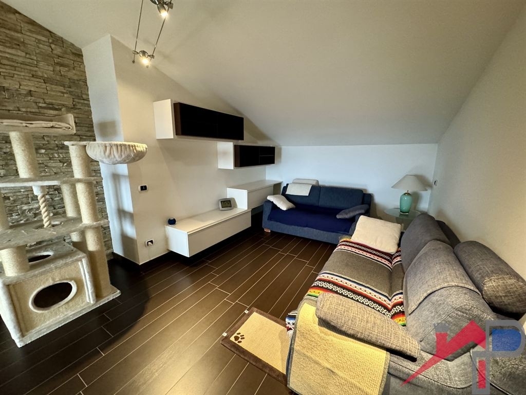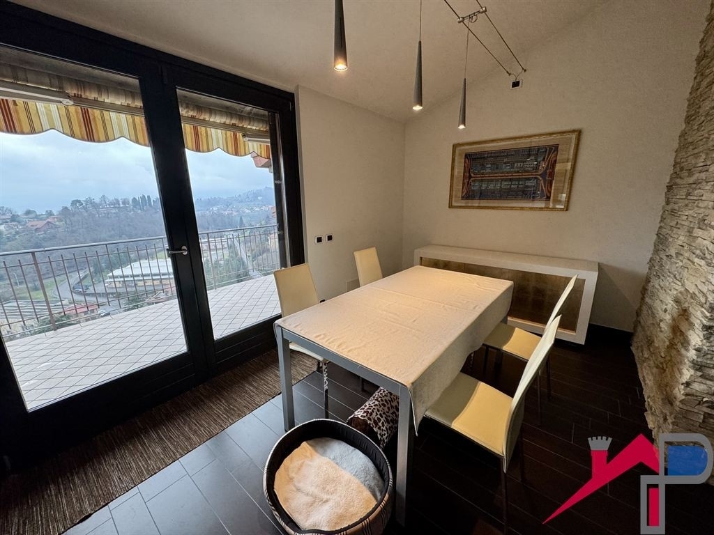 Proposta in corso!!!! caprino bergamasco, zona collinare inizio di celana, in palazzina di soli 4 appartamenti al 2° piano ed ultimo si propone un'appartamento spazioso son soffitti mansardati che donano piacevole movimento all'immobile, composto da: ingresso, ampio soggiorno con zona pranzo separata e uscita su ampio balcone panoramico dove é possibile posizionare un tavolo pranzo, cucina abitabile, disimpegno, 2 camere letto, bagno, comodi rispostigli di cui uno attrezzato per la lavatrice e locale termico. Completa la proprietà un ampia autorimessa per un'auto oltre a spazio uso deposito e possibilità di parcheggio di una seconda auto all'interno del cortile. L'immobile é stato completamene ristrutturato con gusto, presenta riscaldamento a pavimento con caldaia a condensazione, aria condizionata con pompa di calore (caldo/freddo), impianto fotovoltaico da 4,6 kw, impianto d'allarme, impianto videosorveglianza, impianto di aspirapolvere centralizzato in tutta la casa, tende da sole. Le finiture sono di buonissimo livello e rendono l'immobile esteticamente molto piacevole. Dal balcone si gode di una bellissima vista panoramica. La palazzina molto contenuta ha pochissime spese condominiali che vengono gestite in autonomia senza amministratore, (corrente elettrica, acqua, taglio erba del giardino, manutenzione strada e cancello elettrico) - ottima soluzione per giovani coppie e per famiglie.