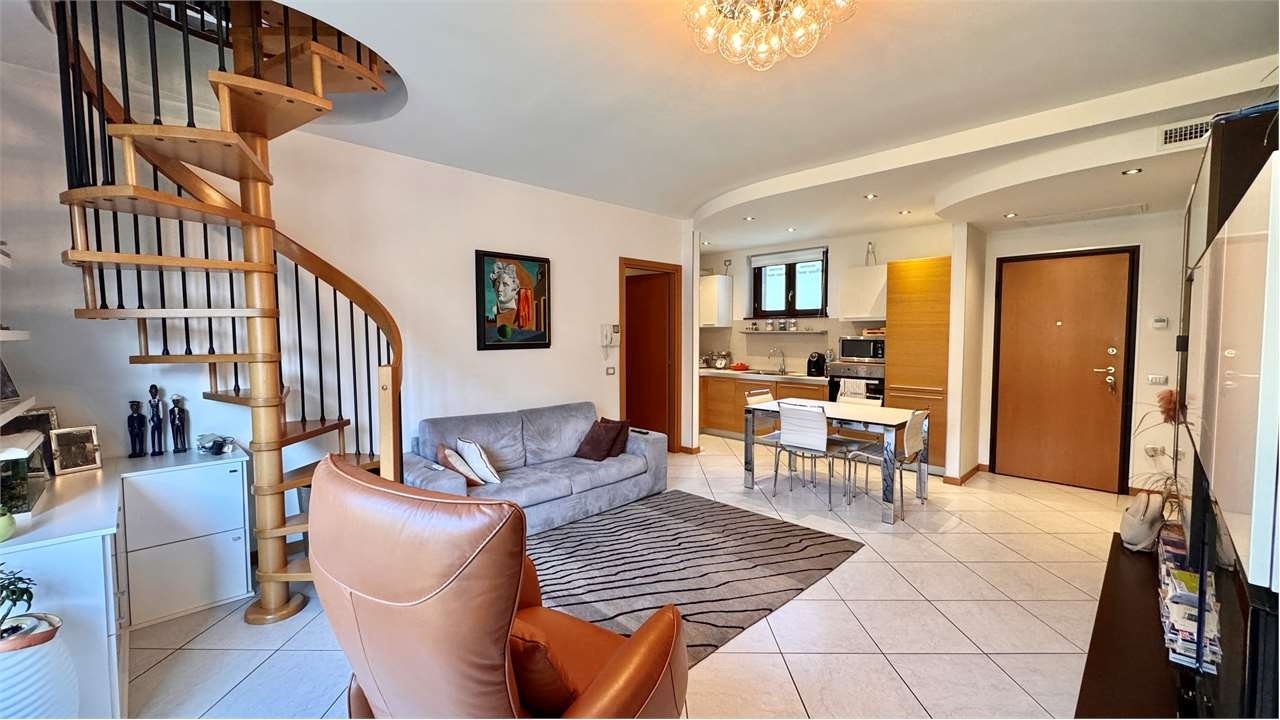 In nuova zona residenziale, proponiamo in vendita curatissimo appartamento posto al piano secondo di una recente palazzina e disposto su due livelli. L'unità, servita da ascensore, è composta da un ingresso sulla zona giorno con terrazzo, una cucina a vista, un piccolo disimpegno, il bagno, una camera singola con balcone e la camera matrimoniale anch'essa servita da balcone. Dalla zona giorno, con una scala a chiocciola, possiamo accedere al piano sottotetto di ampia metratura con una splendida zona living per il gioco e la tv oltre ad un locale servizio. L'accesso al sottotetto è reso possibile anche dalla scala principale dell'edificio, garantendo cosù la logistica dell'arredamento e nel caso in cui si voglia dare un'autonomia allo spazio. Termoautonomo e parzialmente arredato. Completa la proprietà un comodo box auto con cantina.classe energetica: in fase di valutazione