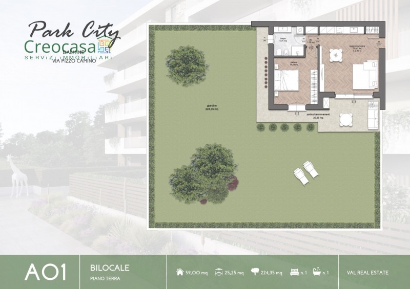 Dalmine zona brembo, vendita diretta no provvigioni!park city è il nuovo complesso residenziale in fase di realizzazione in una delle zone più esclusive di dalmine, adiacente al parco falcone e borsellino.due eleganti palazzine dal design moderno, con finiture di pregio e soluzioni abitative di varie tipologie: bilocali, trilocali, quadrilocali e attici.bilocale con giardino - palazzina aproponiamo bilocale al piano terra, composto da:- luminoso soggiorno con angolo cottura e accesso al giardino privato di 250 mq (inclusi 25 mq di portico);- disimpegno;- bagno principale;- camera matrimoniale di 14 mq con accesso diretto al giardino privato;- possibilità di personalizzare la distribuzione interna degli spazi.dotazioni- riscaldamento autonomo a pavimento con pompa di calore mitsubishi;- pannelli fotovoltaici dedicati;- predisposizione aria condizionata, videosorveglianza e allarme (perimetrale e volumetrico);- impianto di ventilazione naturale;- finiture di alto livello: pietra di credaro, parapetti in vetro, design moderno.- possibilità di box di diverse metrature, con basculante sezionale motorizzata.- impianto elettrico con frutti bticino- sanitari ideal standard serie new tesi- progettazione illuminotecnica notturnaclasse energetica di progetto: a2 o superioretempi di realizzazioneinizio lavori: marzo 2026consegna palazzina a: fine 2027consegna palazzina b: primavera 2028contattiper informazioni o appuntamenti:massimo (anche whatsapp)☎️ufficio servizi offerticonsulenza mutuo gratuita tramite partner creditizio;valutazione gratuita del vostro immobile;preventivo spese gratuito per l'acquisto.