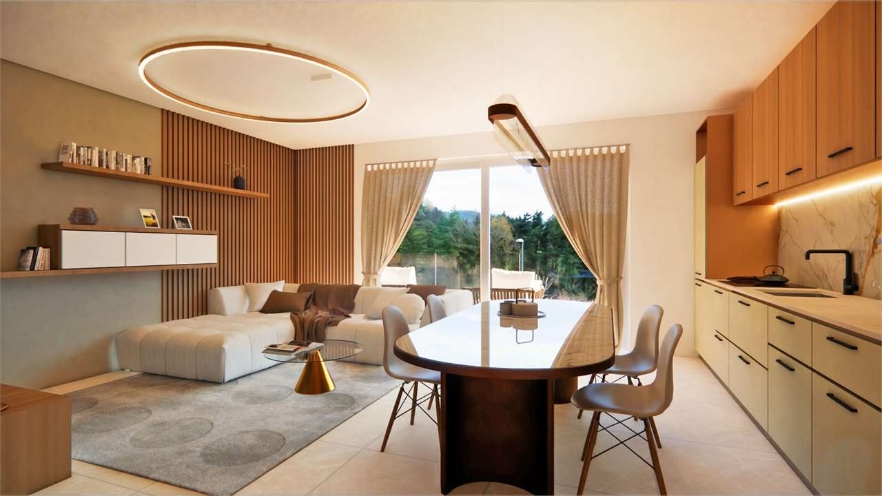 Collinare, in esclusivo nuovo contesto residenziale, proponiamo luminoso trilocale con graziosa zona giorno completamente riversa sul superlativo affaccio panoramico offerto dal grande terrazzo abitabile coperto esposto a sud, 2 gradini collegano la zona notte dando eleganza e carattere all'ambiente, il bagno con doccia e una piccola area verde completano il primo livello, scendendo al piano inferiore ci troviamo nella spaziosa taverna da poter adibire a zona gaming, home theatre o accogliente spa con palestra, il secondo bagno con lavanderia chiudono la zona terra con la massima comodità data dall'adiacente doppio box in larghezza, la consegna è prevista per la fine dell'estate 2026 con la possibilità ancora in essere di personalizzazione interni!!!classe energetica: 3,51 kwh/m2 a