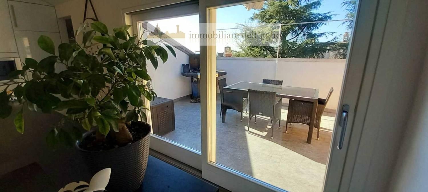 A bedizzole, nel cuore del centro storico, in una palazzina storica ma ben mantenuta con ascensore, proponiamo un esclusivo superattico mansardato caratterizzato da finiture di pregio. L'immobile si apre con un elegante ingresso e un ampio salone arricchito da una terrazza con vista panoramica mozzafiato. La cucina abitabile, dotata di vetrate che si affacciano su un'ulteriore terrazza, offre l'ambiente ideale per piacevoli cene estive in compagnia di famiglia e amici.nella zona notte troviamo tre spaziose camere da letto e due bagni, tra cui una suite padronale con bagno privato. Un'altra terrazza accoglie una raffinata zona relax, completa di sauna e vasca idromassaggio, per garantire il massimo della privacy. Completano la proprietà un garage al piano interrato e posti auto nell'area condominiale.