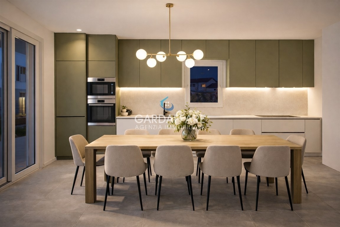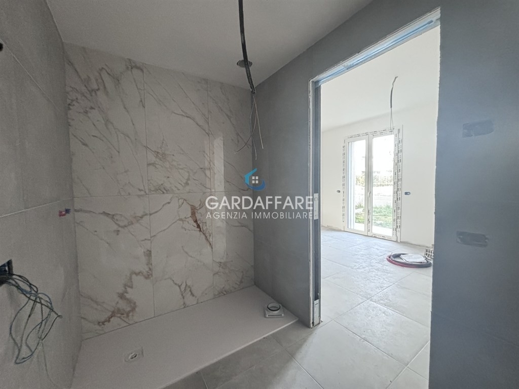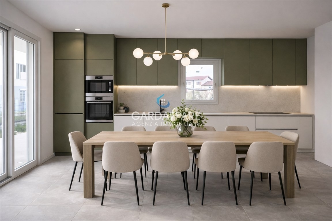 Desenzano del gardanella frazione di rivoltella vi presentiamo ultimo nuovo trilocale con ampio portico e giardino privato, inserito in una palazzina esclusiva di sole sei unità abitative. Le unità hanno la comodità dell'ascensore e godono di una piscina condominiale.questo elegante appartamento offre spazi generosi e luminosi: un ampio soggiorno con cucina a vista, portico e giardino privato ideale per momenti di relax all'aria aperta. La zona notte comprende due camere di cui una matrimoniale con bagno privato, un comodo disimpegno e un bagno secondo di servizio.l'appartamento è in fase di finiture interne e si vende pronto per l'arredamento.riscaldamento, raffrescamento e vmc autonomo fornito da una pompa di calore daikin (elettrica), bagni con sanitari sospesi, predisposizione allarme, videocitofono, infissi triplo vetro con zanzariere, portoncino blindato.prezzo richiesto: € 508.000, con possibilità d' acquistare un box auto separatamente.per ulteriori informazioni, contattare gardaffare al numero Rif. 24-53.classe energetica a3