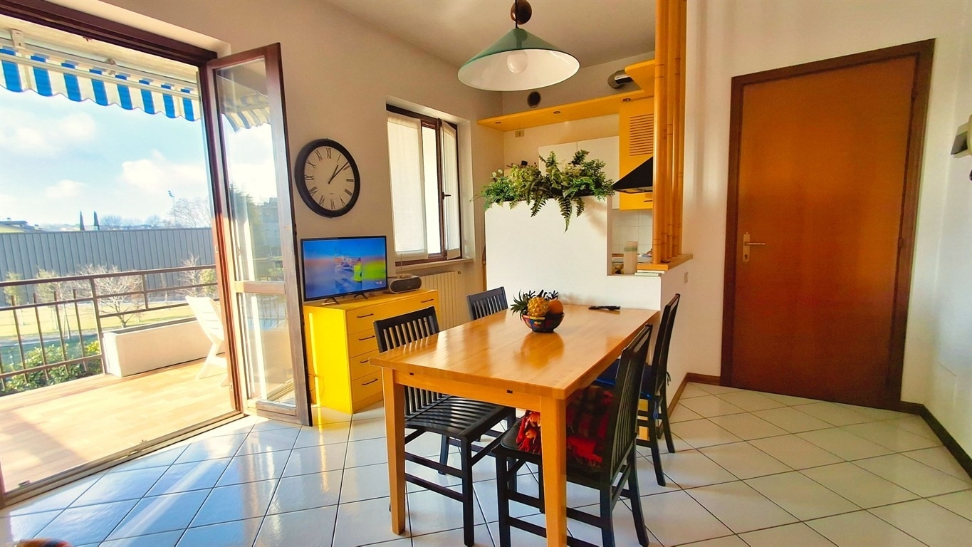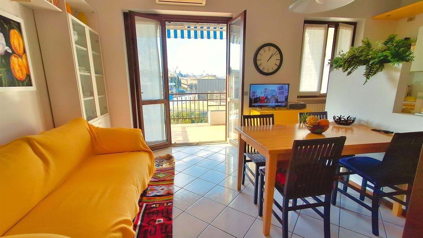 In piccolo residence a 200 metri dalla spiaggia d'oro di desenzano del garda splendido ampio bilocale posto al piano primo composto da luminoso soggiorno che si apre su un terrazzo coperto do 18 mq., ancolo cottura, camera da letto matrimoniale, disimpegno e bagno con finestra. Alla proprietà è unita una comoda cantina ed un box auto capiente nonchè l'accesso al sottotetto privato. Aria condizioneta e riscaldamento autonomo. arricchisce la proprietà il verde comune e la piscina.
