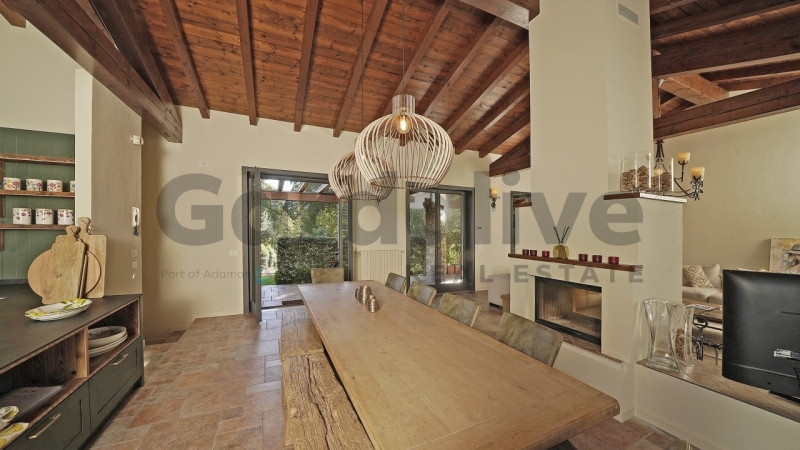 San felice del benaco - a pochi chilometri dal centro storico di san felice del benaco e da salò, offriamo un'elegante villa di recente ristrutturazione, inserita in un contesto residenziale esclusivo verde e tranquillo, di sole ville unifamiliari che condividono una piscina e campo da tennis.l'elegante villa, recentemente ristrutturata secondo un gusto raffinato e con materiali di alto livello, offre un ampio soggiorno dai colori chiari e caldi che, grazie anche alle grandi vetrate con accesso diretto al portico, rendono l'ambiente accogliente e luminoso. Al centro della stanza fa da padrone un meraviglioso camino che separa la zona relax dall'area pranzo.la cucina offre ampi spazi di lavoro ed é attrezzata con elettrodomestici all'avanguardia, senza rinunciare all'eleganza e design. Alle spalle della cucina, un comodo ripostiglio sottoscala funge da dispensa.pratiche scale interne in legno conducono alla fantastica terrazza abitabile con scorci di vista lago, contraddistinta da un pergolato, dove poter godersi le calde serate estive in relax o in compagnia di amici.la zona notte offre una camera padronale con bagno finestrato en suite, completamente ristrutturato e contraddistinto da una meravigliosa doccia walk in. Il piano si completa con altre due camere da letto ed un secondo servizio, anch'esso finestrato.il piano interrato si compone di due ulteriori camere da letto matrimoniali, un bagno con doccia ed un locale oggigiorno utilizzato come lavanderia.la villa é circondata da un grande e verdeggiante giardino esclusivo ben curato, nel quale la privacy é garantita.allo stesso tempo, per chi lo desiderasse, a disposizione dei proprietari del villaggio vi é un'area comune comprendente la piscina, un campo da tennis ed uno da bocce, pallavolo/calcio, area barbecue e prato.la soluzione é ideale sia per coloro che desiderano acquistare una prima casa in un contesto esclusivo senza rinunciare alla vicinanza ai servizi e al centro di san felice, sia come investimento in una delle aree più rinomate del lago di garda.