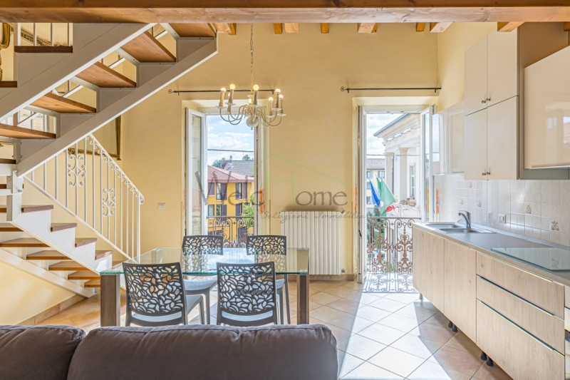 Albavilla centro in caratteristico palazzo storico, affacciata sulla piazza principale accanto al municipio e a pochi passi da tutti i principali servizi, proponiamo una luminosa proprietà, impreziosita da finestre di grande altezza, travi a vista ed un elegante soppalco con ringhiera in ferro battuto, situata al secondo piano.l'ingresso si apre su un piccolo disimpegno che separa il primo locale, attualmente adibito a camera, e il servizio, dall'accogliente zona giorno con parete attrezzata per la cottura. Quest'ultima è resa particolarmente suggestiva dalle due ampie finestre affacciate sulla piazza del paese e dalla scala in legno e ferro battuto che conduce al soppalco aperto, il tutto incorniciato dalle eleganti travi a vista.nel soppalco troviamo la camera matrimoniale, collegata a un'ulteriore locale ideale come cabina armadio o studio, con accesso a un comodo ripostiglio.un appartamento che unisce stile, funzionalità e centralità: perfetto per una giovane coppia che cerca qualcosa di diverso dal solito.