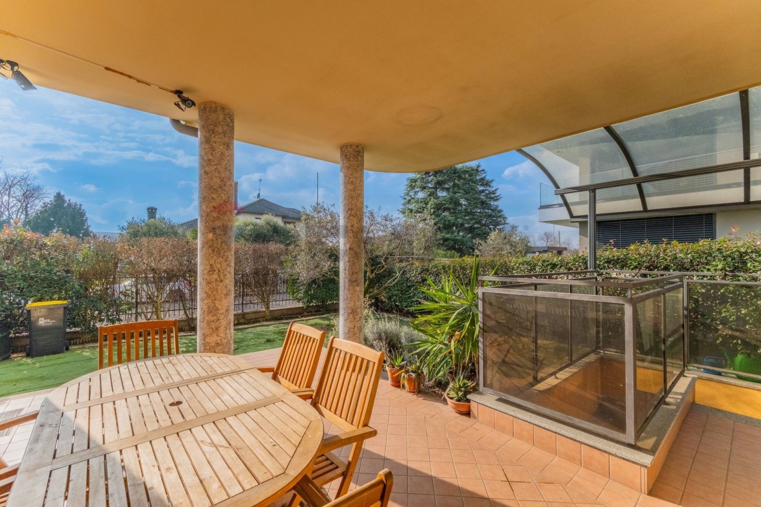 Luminoso e accogliente appartamento in vendita a parabiago, situato al piano terra di un edificio moderno e ben curato.dall'ingresso pedonale si accede al giardino e alla scala che porta al piano dell'abitazione.la zona giorno è composta da soggiorno con climatizzazione e con cucina a vista.la zona notte è invece composta dalla camera matrimoniale con acccesso al balcone, dalla seconda camera anch'essa con accesso al balcone e dal bagno; le camere hanno la predisposizione per l'installazione dell'impianto di climatizzazione.dalla sala si accede all'ampio porticato coperto naturale ampliamento degli spazi dell'abitazione dove, installando delle vetrate amovibili sarà possibile utilizzare lo spazio per trascorrere momenti di conviviabilità con la famiglia e gli amici.una scala porta alla grande cantina utilizzabile come locale hobby e dove si trova il secondo bagno, comodissima la presenza di un ampio cavedio coperto utilizzabile come ripostiglio o dispensa.gli infissi sono in doppio vetro legno, garantendo un'elevato isolamento termico e acustico.il riscaldamento è autonomo per una migliore gestione dei costi.completa la proprietà un box auto doppio in larghezza.la soluzione si trova al piano terra di un edificio di due piani, inserita in un contesto tranquillo e residenziale, perfetto per chi cerca un'abitazione silenziosa e riservata.le spese condominiali ammontano a soli 70 euro mensili, garantendo un buon rapporto qualità/prezzo.non perdere l'opportunità di acquistare questo splendido appartamento, ideale per chi desidera una casa confortevole e funzionale, immersa nel verde ma allo stesso tempo vicina ai principali servizi e alle vie di comunicazione.classe energetica d ipe 151,86 kwh/m2ariferimento rib 338