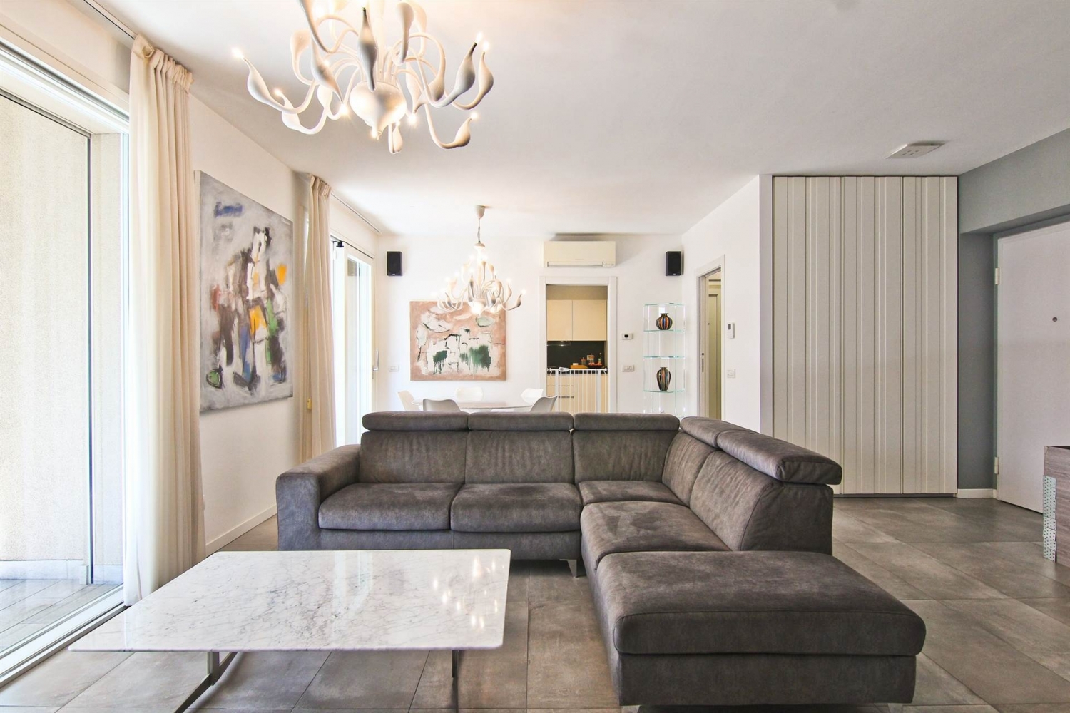Collocata in zona semicentrale del centro della vivace cittadina di barlassina, l'elegante palazzina di recentissima costruzione che ospita l'unità immobiliare è stata progettata da un noto studio di architettura della zona, pensata per coniugare efficienza energetica, eleganza nelle geometrie esterne e comfort nell'abitare gli interni. al piano primo è collocata l'unità immobiliare caratterizzata da un taglio interno razionale, un'esposizione che garantisce luminosità' per tutto l'arco della giornata ed una finitura d'interni curata ed in ottimo stato manutentivo. L'ingresso è nel soggiorno ampio e confortevole dove il comodo guardaroba è nascosto da un mobile su misura inserito in una nicchia in muratura. L' ambiente è gestito in zona relax con divano in direzione della parete audio/video e zona pranzo più vicina alla cucina. Dominano sul fondo le due vetrate scorrevoli che consentono di accedere al terrazzo della zona giorno, profondo e coperto: un vero e proprio locale all'aperto ideale per passare piacevoli momenti all'aria aperta. La cucina è abitabile anch'essa di generose dimensioni dove poter inserire al suo interno il secondo tavolo da pranzo, anch'èssa con portafinestra collegta al terrazzo. La zona giorno è completata dal disimpegno, bagno passante e locale lavanderia. il disimpegno conduce alla zona notte fornita di due camere da letto, locale studio (utilizzabile come terza cameretta) bagno e cabina armadio. Anche la zona notte è fornita di profondo e coperto terrazzo. Completano cantina e box auto doppio in larghezza con basculante motorizzata e dotato di impianto di allarme collegato all' appartamento. Curato in ogni minimo dettaglio l'unità immobiliare è il giusto connubio tra efficienza energetica al servizio del comfort abitativo e scelte extra capitolato per un ambiente raffinato e di buon gusto: è presente il cappotto termico, il riscaldamento è a pavimento, i serramenti sono in legno del tipo a basso emissivo, zanzariere zona giorno, tapparelle in alluminio motorizzate con chiusura centralizzata, è presente l'impianto dell'aria condizionata, i pavimenti sono in gres porcellanato, riscaldamento diviso in locali, impianto allarme, sanitari sospesi, filodiffusione con predisposizione impianto dolby surround, vetrata scorrevole nel disimpegno, n° 7 porte scorrevoli, attacco acqua esterno sui balconi, tende da sole motorizzate. Contattaci per la visione di questa esclusiva proprietà. classe energetica: b epi: 36,27 kwh/m2 anno