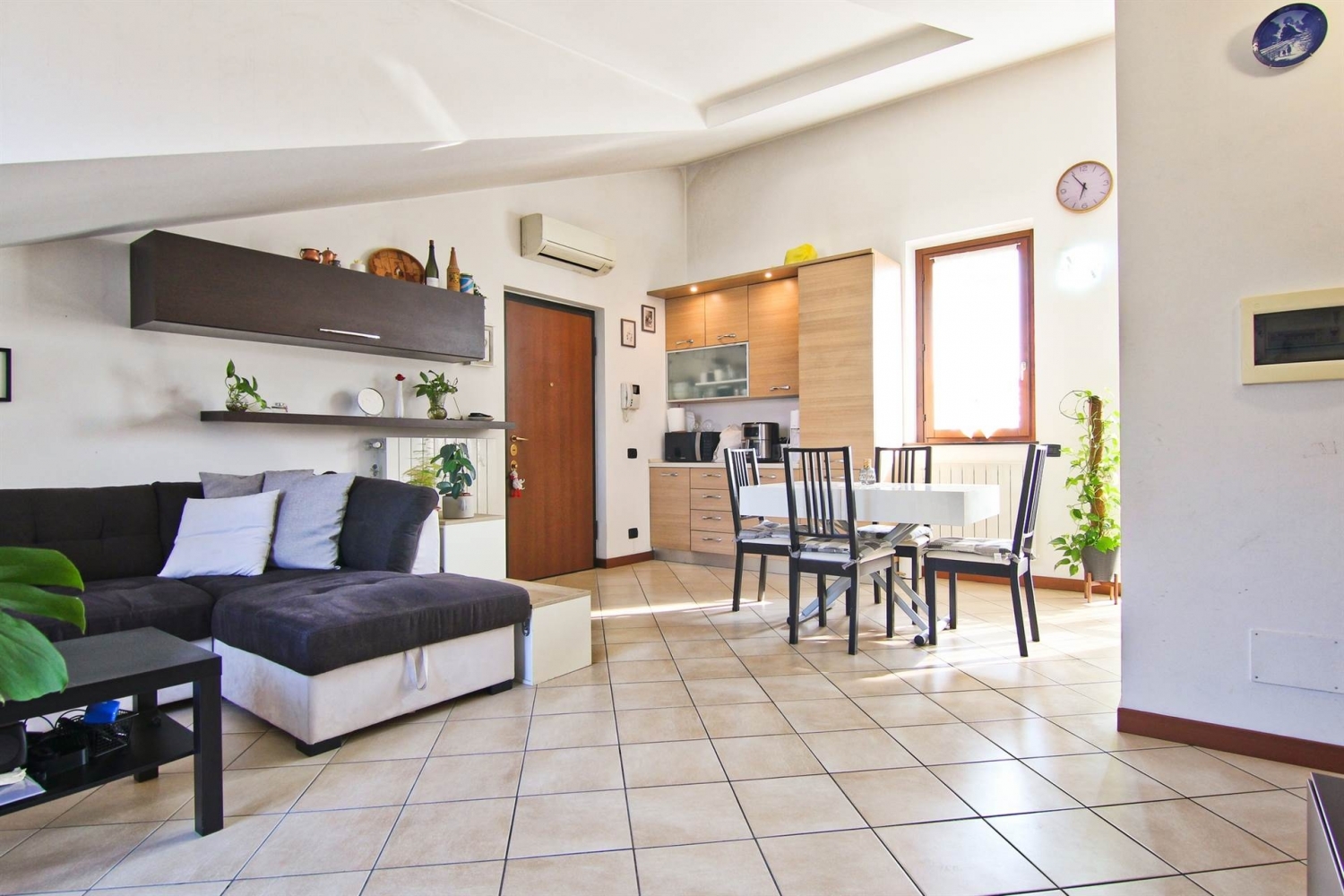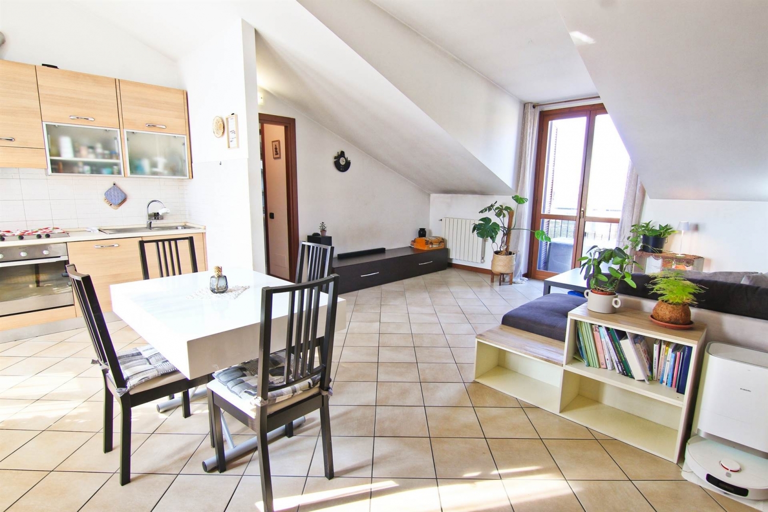Collocata in una zona residenziale del comune di ceriano laghetto, la posizione della palazzina â€" di recente costruzione â€" consente il facile utilizzo dei servizi primari, distanti poche decine di metri, mantenendo al contempo una posizione riservata e immersa nel verde.tramite le principali arterie stradali è possibile raggiungere la cittadina e la stazione di saronno sud in poco meno di 5 minuti d'auto.all'ultimo piano, è collocata l'unità immobiliare dotata di doppia esposizione.l'ingresso si apre su un soggiorno luminoso e ampio, organizzato con zona cottura disposta su doppia parete per i mobili della cucina, con un primo accesso al balcone tramite portafinestra.al centro trova comodamente posto il tavolo da pranzo. Dall'altra parte si sviluppa la zona relax, con divano rivolto verso la parete audio/video, anch'essa dotata di portafinestra che consente l'accesso al balcone.il disimpegno conduce alla zona notte, composta da un utile ripostiglio dotato di attacco per la lavatrice, bagno con box doccia e un'ampia camera matrimoniale con seconda uscita sul balcone esposto a sud.possibilità di acquisto box auto doppio.l'appartamento è pronto per essere abitato, con finiture in ottimo stato manutentivo e senza necessità di lavori: portoncino blindato, serramenti in legno con vetrocamera, pavimentazione in ceramica monocottura di prima scelta posata in diagonale, parquet nella camera, predisposizione impianto di aria condizionata e videocitofono.termoautonomo e basse spese condominiali. Classe energetica: c epi: 22,99 kwh/m2 anno