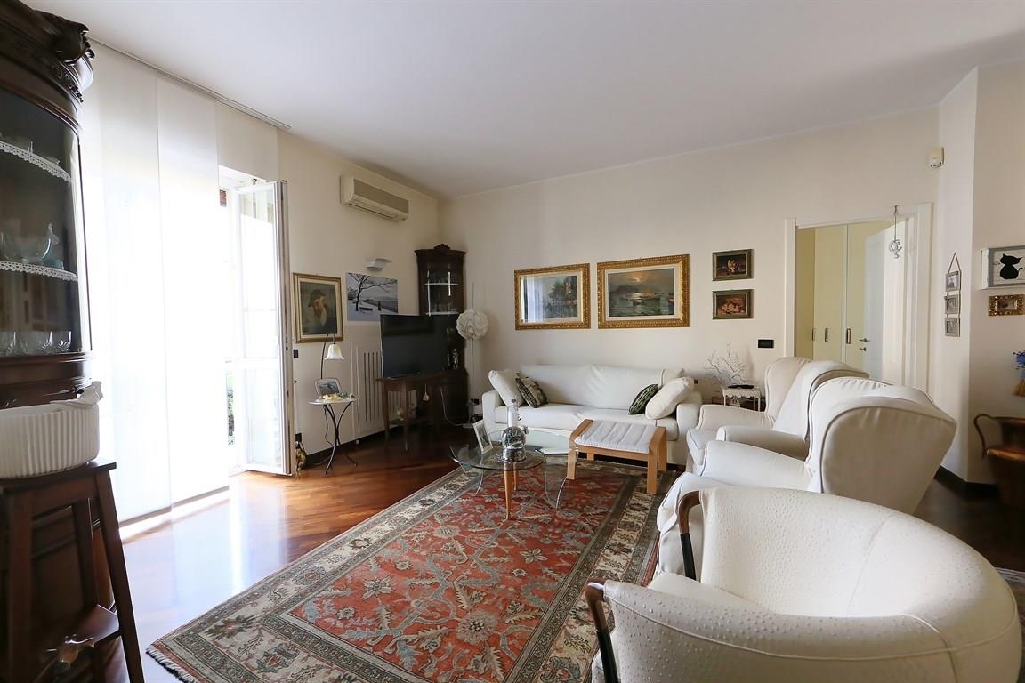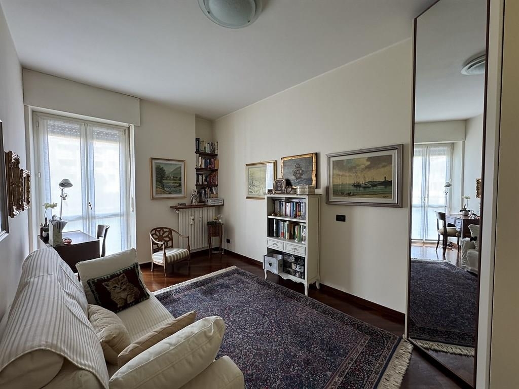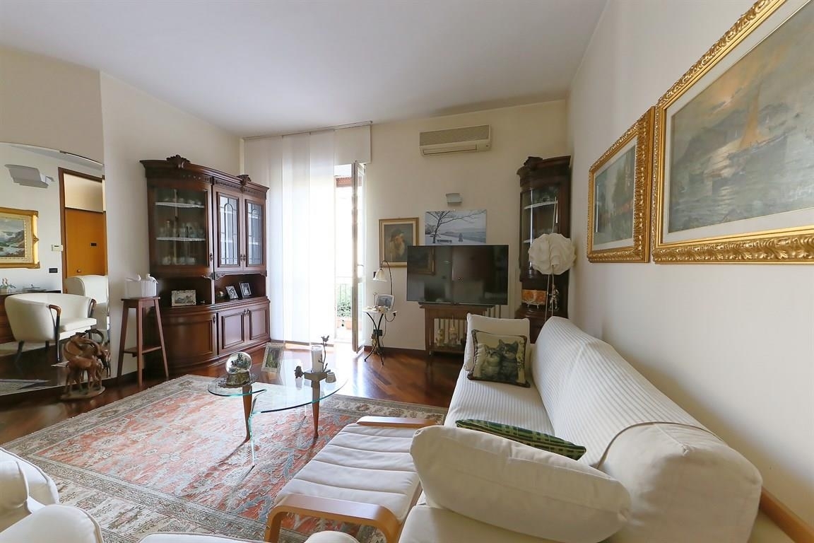 L' appartamento, ubicato al primo piano, si sviluppa su una superficie di circa 95 mq. L'ingresso è direttamente sul soggiorno, con uscita sul balcone, sulla destra troviamo una camera da letto/studio con porta finestra sul balcone, dall'altra la cucina abitabile, il bagno, la camera padronale. In un ansa del soggiorno, di fianco all'ingresso è stata ricavata una vera e propria cabina armadio che funge anche da cappottiera. L'intero appartamento è stato ristrutturato circa 15 anni fa con rifacimento di tutti gli impianti idrici/sanitari ed elettrico, serramenti in pvc doppio vetro e parquet su tutta la superficie, compreso il bagno dotato di vasca angolare e doccia. E' in corso una cila in sanatoria per sanare le opere fatte precedentemente. Nel soggiorno c'è lo split freddo/caldo aria condizionata e c'è l'impianto antifurto. All'appartamento sono abbinate 2 cantine, una è un recupero di un sottoscala utile per ricovero biciclette e scooter, ed un box singolo al prezzo di 30.000 euro . Spese condominiali intorno ai 2.500 euro/anno comprensive di spese di riscaldamento.