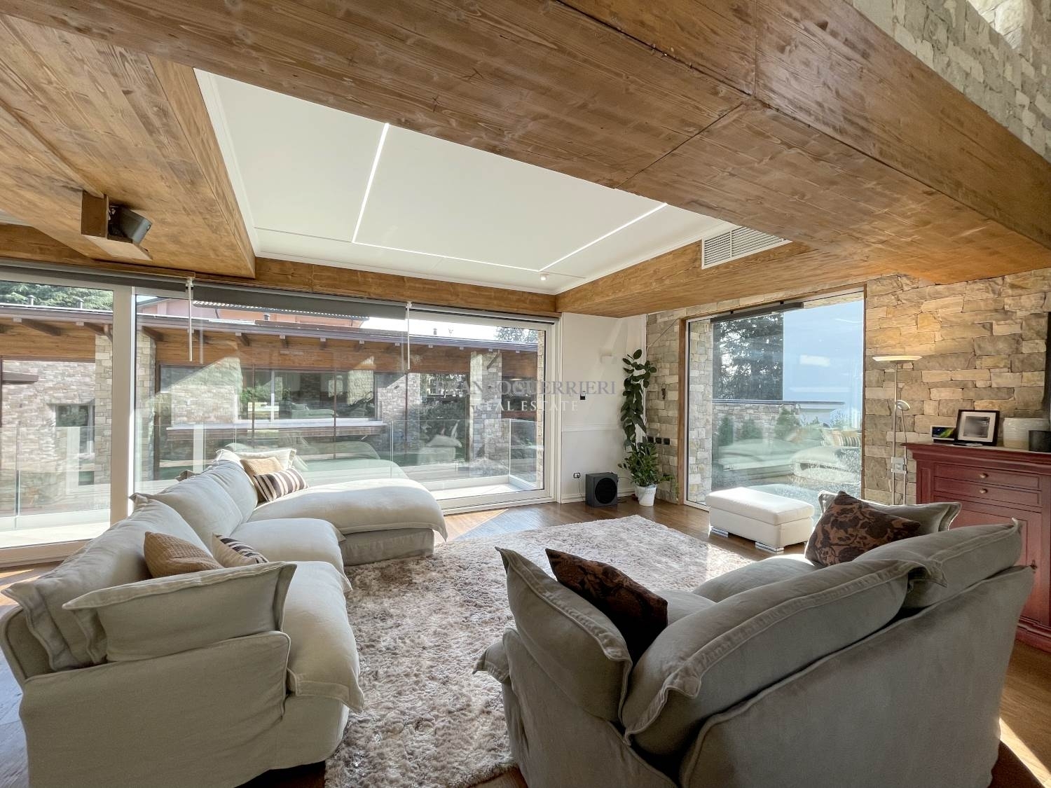 In una tranquilla zona residenziale, proponiamo una villa di recente costruzione dal design spettacolare e unico, che vanta una superficie utile complessiva di 577 mq ca.questa residenza progettata con attenzione ai dettagli e ai più alti standard di comfort, offre ambienti ergonomici e luminosi grazie a soluzioni architettoniche all'avanguardia.l'esterno è rivestito in pietra naturale, un elemento che si estende all'interno della casa, creando un armonioso legame con i dettagli in legno e le ampie superfici vetrate.l'ingresso principale si apre su un ampio salone a doppia altezza, impreziosito da un elegante lampadario che cattura lo sguardo e illumina l'ambiente. La disposizione su falsi piani conferisce movimento alla struttura, differenziando gli spazi con stile e funzionalità.procedendo verso la zona notte, troviamo due camere da letto e due bagni rifiniti in pregiato marmo. Salendo ancora, si accede a una splendida terrazza, perfettamente arredata per accogliere ospiti e ideale per godere di momenti di relax. Un ulteriore piano ospita la cucina e la sala da pranzo, con un design sofisticato e distintivo, pensato per esaltare la convivialità. Tutti i livelli sono comodamente collegati da una scala di design e da un ascensore in cristallo.dal salone principale, scendendo alcuni gradini, si raggiunge un'ampia sala attualmente adibita a area giochi per bambini, perfetta anche come terza camera da letto. Scendendo ancora, un grande spazio versatile può facilmente ospitare una camera supplementare con bagno. Il piano seminterrato include locali di sgombero, una lavanderia e stireria.la villa è circondata da un incantevole giardino, con un camminamento in pietra che conduce alla raffinata dependance, pensata come oasi benessere. Questa area spa comprende una piscina coperta riscaldata, bagno turco, sauna, bagno e un portico con jacuzzi, oltre a uno spazio perfetto per una palestra privata.l'immobile è dotato di riscaldamento a pavimento, aria condizionata canalizzata e un sistema domotico per la gestione intelligente dei servizi. I pannelli solari con batterie di accumulo e colonnine per la ricarica di veicoli elettrici completano questa residenza moderna, rendendola un autentico gioiello di stile e tecnologia.completa la proprietà un'ulteriore area di 300 mq, con possibilità di edificare un'ampia autorimessa con tre posti auto coperti e cinque posti auto scoperti, ad euro 200.000,00.l'immobile è disponibile anche in locazione ad euro 10.000,00/mese.indice di prestazione energetica in attesa di certificazione.note: le metrature sono del tutto indicative non potranno essere utilizzate come parte integrante in un eventuale contratto di vendita o locazione della proprietà. Classe energetica: non indicata