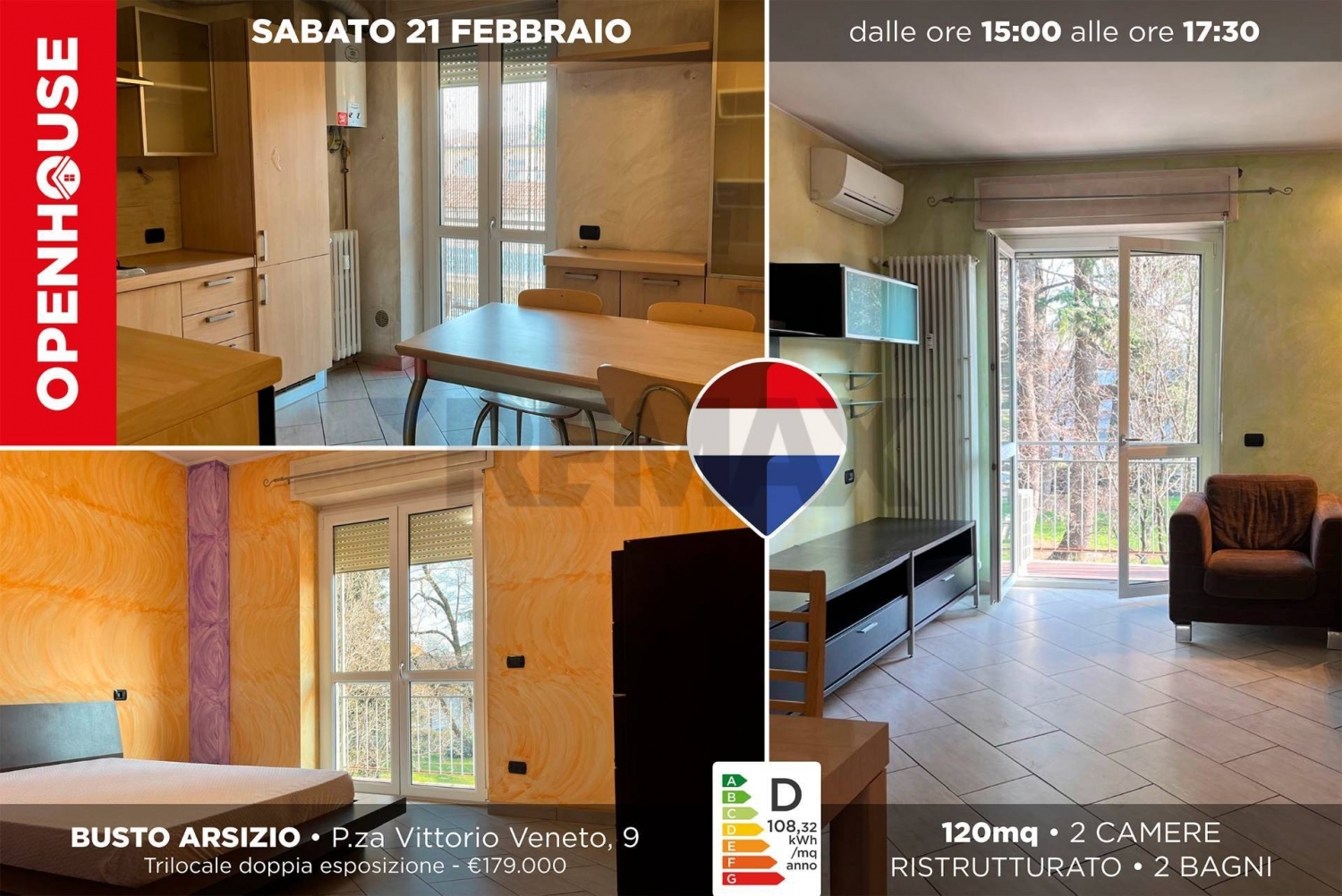 Oen house sabato 21/02 dalle ore 15 alle 17:30luminoso trilocale in zona comoda con fn e centro città.proponiamo in vendita un ampio trilocale con doppia esposizione che garantisce luminosità e comfort.l'appartamento recentemente ristrutturato già pronto per essere personalizzato e abitato è cosù composto: dall'ingresso si apre una spaziosa sala con accesso ad un comodo balcone che si affaccia sul verde della piazza sottostante, a seguire una cucina abitabile , anch'essa con accesso ad un balcone che guarda il cortile interno, due comodi servizi finestrati, uno con vasca e l'altro con doccia, due camere da letto una delle quali con cabina armadio, completamente ristrutturato, gli infissi sono in pvc doppio vetro, la porta d'ingresso blindata ed è presente l'impianto di condizionamento. Completano la proprietà una cantina, possibilità acquisto box singolo al prezzo di 15.000,00l'appartamento è situato in una zona ben servita, con negozi di prima necessità e a breve distanza dalle ferrovie nord e dal centro città.comodo anche per raggiungere l'aereoporto di malpensa in pochi minuti di macchina. non perdere l'occasione di visitarlo! chiamaci per fissare un appuntamento, saremo lieti di presentarti la tua futura casa! classe energetica d ipe 108,32 kwh/mqa.