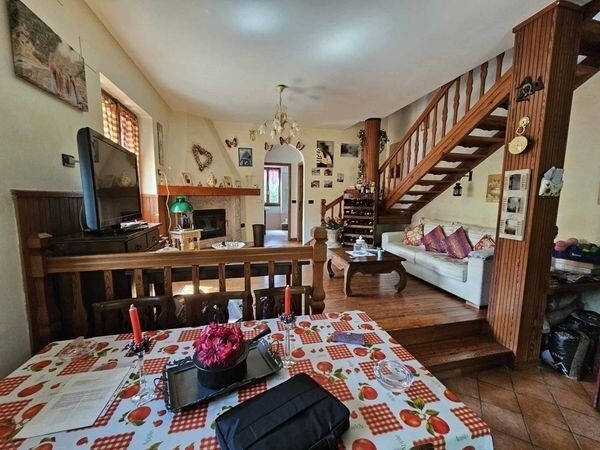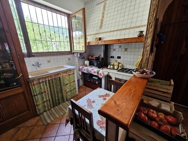 Mongiardino ligure (via maggiolo) vendesi casa indipendente libera su 4 lati e disposta su due piani abitativi. Al piano terreno troviamo un'ampia sala/soggiorno con caminetto e cucina a vista. Sullo stesso piano troviamo ampio bagno con vasca idromassaggio, una camera e un localino uso lavanderia/ripostiglio. Al primo piano troviamo 2 camere, un secondo bagno e un comodo locale ad uso ripostiglio/sottotetto. Nella stessa vendita è compreso un comodo locale a uso deposito di 21 mq, il giardino recintato delimita la proprietà stessa. L'accesso è raggiungibile veicolarmente tramite comodo cancello. Posizione panoramica, soleggiata per poter godere momenti di puro relax e intrattenere rapporti conviviali con amici e parenti. Ottima soluzione opportunita'!