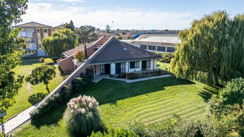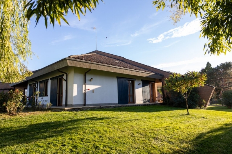 Mgrv0077 - per informazioni e visite contattare il nostro consulente immobiliare marco al anche tramite sms-whatsapp*** oviglio al - via vittorio emanuele ii 44 ***proponiamo in tranquilla e soleggiata posizione splendida villa immersa nel suo verde e piantumato giardino. l'immobile tagliato architettonicamente in moderno ed unico stile ha superficie totale di 500mq divisa su tre livelli mentre il terreno su cui poggia di 5.200mq si compone di giardino, prato ed orto.si accede dall'ingresso sull'ampio ed alto doppio salone dotato di camino rivestito in marmo su parete di mattoni con faccia a vista e zona pranzo conviviale dal quale uscire sul terrazzo con tende da sole, cucina abitabile, disimpegno verso la zona notte con tre spaziose camere, bagno con vasca e servizio con doccia. Vicina all'ingresso la comoda lavanderia. Centralmente la scala a vista con mancorrenti in ferro conduce al piano primo dove a soppalco troviamo il secondo salotto, lateralmente la quarta stanza mansardata da adibire a studio o quarta camera con annesso terzo servizio pronto per esser arredato, grande terrazzo sul retro sopra a quello del pianto terra e terrazzino sul fronte.scendendo nel seminterrato troviamo un box auto comodo anche per quattro autovetture, la cantina, tre grandi locali ad uso sgombero dove volendo una tavernetta potrebbe trovarne utilizzo come anche una seconda lavanderia.riscaldamento e raffrescamento degli ambienti avviene con sistema radiante a pavimento programmabile per ogni piano.la villa ha pavimenti in cotto d'este al piano terra mentre il parquet riveste dalla scala a salire l'intero piano primo.muri esterni in mattoni paramano, percorso autovetture e cortile in autobloccanti, rampa per la discesa nel seminterrato riscaldabile per evitare il ghiaccio nel periodo invernale cosù da rendere sicuro l'accesso anche nella fredda stagione. Tutto il seminterrato è protetto da una intercapedine che evita l'umidità di risalita in casa. Cancello su strada e portone del seminterrato automatizzati.gli infissi sono in legno con vetrocamera, molte porte interne sono a scrigno, le persiane sono a scorrimento orizzontale. antifurto a doppio funzionamento, impianto di irrigazione con pozzo per la fornitura dell'acqua, barbecue con alta canna fumaria.bellissimi poi gli alberi, tra cui domina un grande pioppo e due maestosi salici piangenti.piante da frutta ? per ogni stagione: ciliegie, pesche, albicocche, fico, caco, uva, nocciole, oltre all'ampio spazio per dedicarsi volendo anche all'orto.e' posizionata a pochi passi dal centro cittadino, 10 minuti dal casello autostradale di felizzano, 10 minuti da alessandria, 20 minuti da asti. L'immobile è già sicuramente di pregio, subito pronto da vivere e volendo con l'aggiunta di una piscina diventerebbe una lussuoso angolo di paradiso !le informazioni riportate nell'inserzione hanno carattere informativo e non costituiscono vincolo contrattuale.