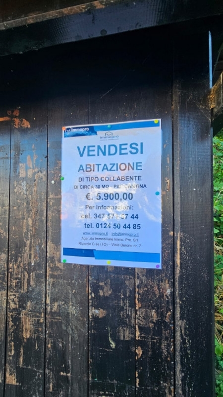 A pochi passi dal centro di alpette in località formiero, proponiamo in vendita un'abitazione di tipo collabente (f/2), situata nel cuore della tranquilla borgata con vista panoramica sui boschi che affacciano verso il comune di pont canavese.l'immobile è posto al primo piano ed è raggiungibile tramite una scala in pietra.e' costituito da un ingresso su un monolocale con un piccolo terrazzo esposto a sud.la parte esposta a nord affaccia su un vicolo che dà accesso anche alla cantina di pertinenza.nel borgo è disponibile un parcheggio dal quale partono dei graziosi vicoletti lastricati in pietra che attraversano tutta la frazione.la località si trova sulla strada che collega il comune di cuorgnè al comune di alpette ed è anche raggiungibile percorrendo un sentiero che parte da pont canavese attraverso un bellissimo bosco.e' da ristrutturare e potrebbe diventare una casa per vacanze immersa nel verde delle colline dove rifugiarsi per fuggire dal caos della città.il prezzo è trattabile.'la casa è una cosa seria, affidati ai professionisti'la nostra agenzia vi garantisce chiarezza e trasparenza in ogni fase della compravendita o locazione immobiliare.vi offriamo inoltre valutazioni gratuite sugli immobili, perizie tecniche, progettazione e consulenze personalizzate per mutui.selezioniamo per i nostri clienti immobili a rivarolo, in canavese e provincia di torino, valle d'aosta e liguria.la nostra agenzia si trova a rivarolo c.se in viale berone 7, potete contattarci al numero , oppure saremo lieti di concordare un appuntamento.troverete altre interessanti proposte sul nostro sito