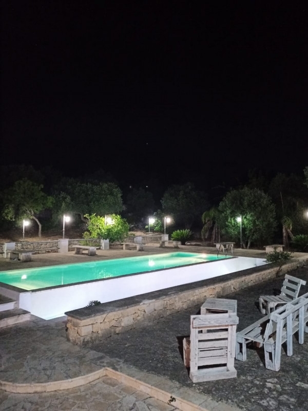 Amper s. R. L. Di ostuni (br) propone in fitto (per lunghi periodi minimo un anno) in agro di ostuni (br) alla contrada badessa, trullo saraceno con lamia affiancata ristrutturati e rifiniti. L'immobile è composto da due camere da letto, soggiorno, cucina, bagno e piscina. Impianto di climatizzazione caldo e freddo, stufa a pellet. Terreno di pertinenza, qualità frutteto misto, di mq. 3000 circa e gode inoltre di vista panoramica sulle colline della valle d'itria. Dista da ostuni km 4 e dal mare km. 12. La richiesta è di € 1.300 mensili.