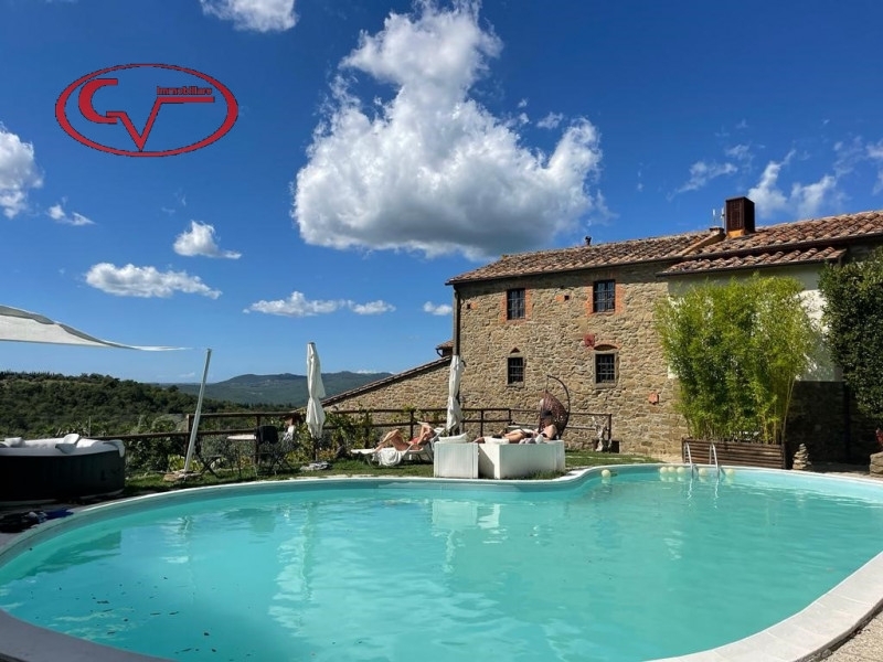 Porzione di antico casale disposto su due piani, ristrutturato con giardino e piscina a comune, in magnifica posizione dominante perfettamente collegata a siena, firenze ed arezzo. Appartamento 'belvedere', mq. 129: p1: sala con ang. Cott. , 2 camere, wc. P2°: loggia coperta, sala con ang. Cott. , camera, wc. Possibile utilizzo anche come due appartamenti indipendentiadatto sia per casa vacanza che per prima abitazione ma anche come forma di investimento da destinare a locazione stagionalegiudizio ottimo