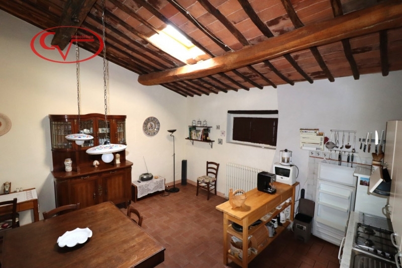 In un incantevole contesto paesaggistico e panoramico immerso nel verde, proponiamo in vendita una porzione di casa colonica adibita a civile abitazione a soli 10 minuti da montevarchi (amministrativamente sotto bucine). l'immobile ha una superficie commerciale (senza esterno ) di circa 220 mq ed è circondato da un ampio giardino esclusivo che offre privacy e spazio per attività all'aperto. La casa dispone di ingresso privato e si compone al piano primo di un luminoso soggiorno con soffitti alti e travi in legno a vista e camino ideale per momenti conviviali. La cucina è abitabile la zona notte ha 3 camere da letto spaziose che possono ospitare comodamente famiglie numerose o visitatori. Inoltre sono presenti due bagni completi.la proprietà include anche un fondo al piano terra utile come ripostiglio o cantina e diversi posti auto nell'ampio giardino circostante.il costo delle spese condominiali è contenuto, riscaldamento con gpl/pellet, approvvigionamento idrico con acqua di un pozzo condominiale. questa casa rappresenta l'opportunità ideale per chi cerca uno stile di vita sereno senza rinunciare alla vicinanza ai servizi principali. Non perdere questa occasione! contatta subito l'agenzia cv immobiliare per maggiori informazioni o per prenotare una visita.