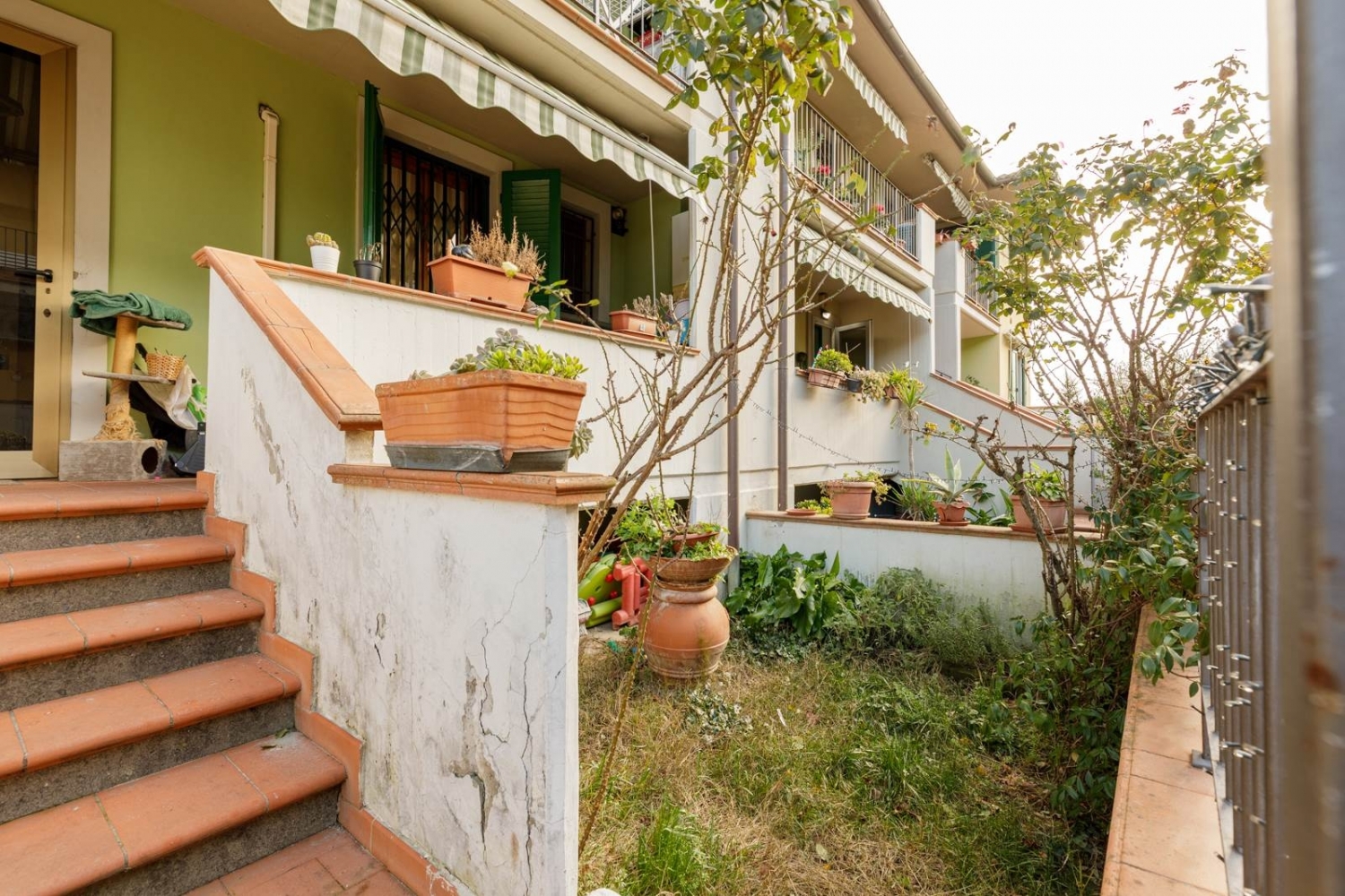 Nostra esclusiva. Campi bisenzio, località san piero a ponti, in contesto prettamente residenziale, tranquillo e riservato, nonchè circondato da verde pubblico, si propone in vendita appartamento trivani di 76mq catastali oltre giardino, terrazzo e cantina, posto al piano terra rialzato all'interno di un moderno e curato complesso di appartamenti a schiera. Si accede all'abitazione attraverso l'entrata indipendente dal suddetto giardino, uno spazio verde intimo e accogliente, ideale per momenti di relax all'aperto. Pochi gradini accompagnano al terrazzo, da cui si accede al soggiorno open space con angolo cottura, munito altresù di ripostiglio/dispensa. Il disimpegno conduce poi alla zona notte, composta da bagno finestrato con doccia e da due camere da letto, una singola e una matrimoniale, entrambe con accesso riservato ad un ulteriroe terrazzo tergale. Completa la proprietà una cantina di 6mq al piano seminterrato del fabbricato. L'abitazione è dotata altresù di portone blindato, inferriate anti-intrusione, doppie finestre e aria condizionata. Soluzione curata, funzionale e pronta da vivere.