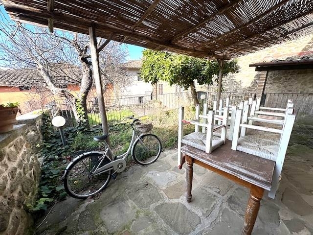 Nel antico borgo di ruffoli in posizione collinare vendesi porzione di colonica terratetto con giardino privato trattasi di un antico fabbricato. Al piano terreno rialzato si trova una ampia cucina/soggiorno con antico camino ,altro soggiorno con piccolo servizio e ripostiglio. Al piano superiore si trovano due camere matrimoniali ,una camera singola oltre due bagni dei quali uno finestrato.l'abitazione si presenta in ottime condizioni di manutenzione con tetto rifatto.l'immobile e stato restaurato pochi anni fa e poco usato.due posti auto di pertinenza .ottima posizione collinare distante da greve circa 4 km classe energetica: g