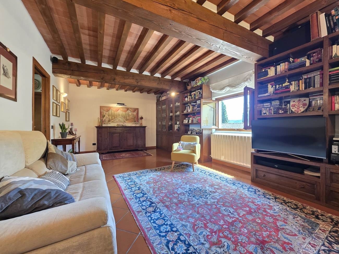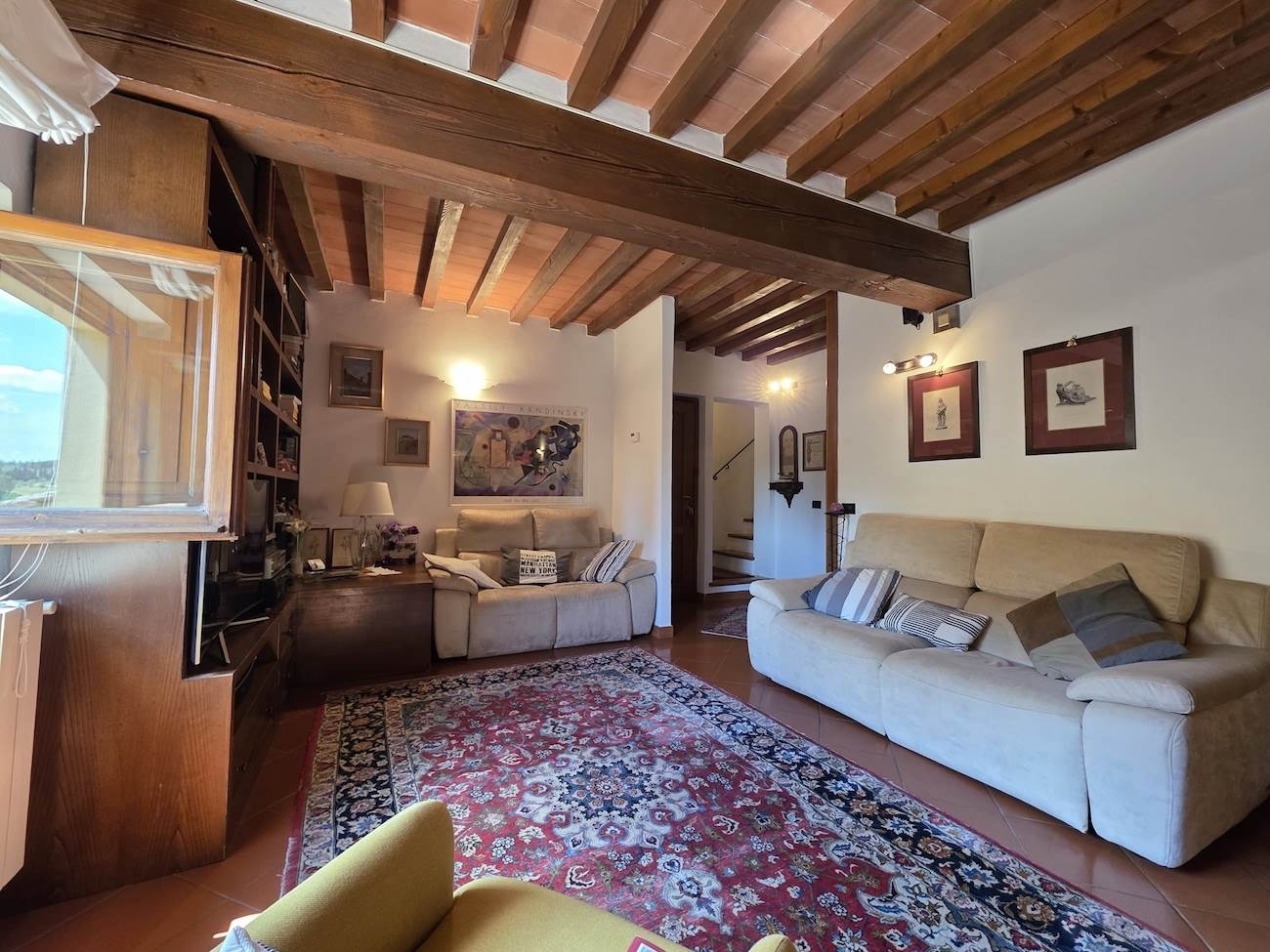 Scandicci alto - nostra esclusiva - in prestigioso complesso immobiliare, situato sulle prime colline di scandicci, in posizione dominate ed immerso nel verde, vendesi caratteristico appartamento completamente e finemente ristrutturato con gusto, sul finire degli anni '90. l'appartamento è disposto su due livelli, primo e secondo ed ultimo, al piano primo, troviamo l'ingresso aperto su di un'ampia ed elegante zona living, l'accogliente cucina abitabile con comoda dispensa, oltre ad un bagno di servizio con doccia. Le finestre regalano splendidi e rilassanti affacci sulle colline circostanti, creando una atmosfera unica. al piano superiore, una spaziosa camera matrimoniale con armadio a muro, ulteriori due camere, un bagno con vasca idromassaggio oltre ad un utile ripostiglio. completa la proprietà, una caratteristica cantina al piano interrato della villa, dove un tempo alloggiavano le botti e due posti auto assegnati in uso esclusivo nell'area destinata a parcheggio condominiale.a disposizione dei residenti, il magnifico parco condominiale, che circonda l'intero complesso, l'ulteriore area a parcheggio condominiale per gli ospiti e gli amici, l'ampio terreno agricolo, in parte ad oliveto ed infine, la cappellina privata.si sottolinea l'incredibile location del complesso residenziale, che gode di una posizione splendida sulle colline toscane, ma allo stesso tempo la vicinanza ai servizi, al centro di scandicci, a firenze ed ai principali snodi autostradali. ciabilli&d'uva immagini e planimetrie sono puramente indicative. classe energetica: g