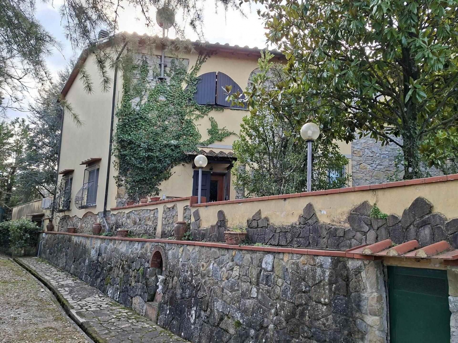 (rif. T-759) zona panoramica prossimo villa castelletti, villa ex-colonica libera su 4 lati, completamente ristrutturata, con 10 vani e mq. 255, posta al piano terra e primo piano cosi' composta : al piano terreno ingresso soggiorno open space e caminetto), cucina e bagno, al piano primo con scala interna, 3 camere da letto, bagno; oltre altro terratetto (piano terra e 1 piano) con ingresso indipendente di circa 104 mq compresi, eventualmente da frazionare. Conclude la proprieta' garage di mq 37 e cantina nel seminterrato, un ettaro di terreno (10.000 m) con una parte a giardino e l'altra a vigneto e uliveto. Prezzo trattabile. classe energetica: g