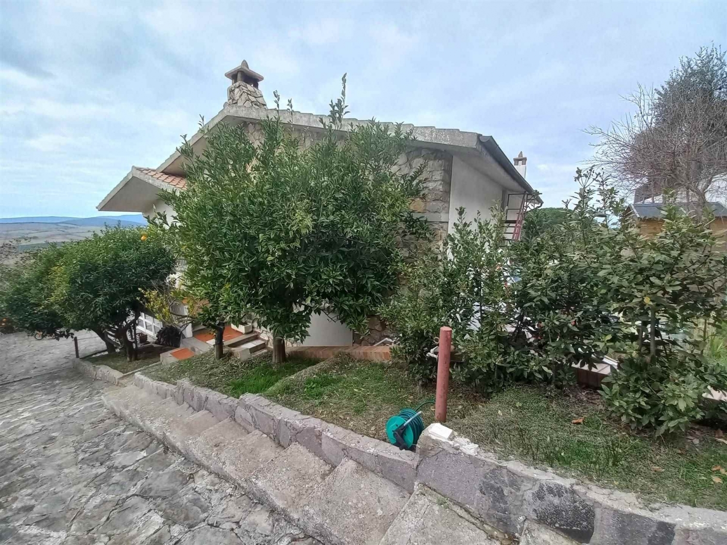 Comoda , dotata di ogni confort e libera su quattro lati, la villa è stata ristrutturata nel 2013.la villa è ubicata all'interno del paese ,vicino ai servizi essenziali e comunque messa in un posizione tale da garantirne la privacy.questa s i sviluppa su due livelli e oggi è suddivisa in due appartamenti indipendenti :al piano superiore il primo e luminoso appartamento si compone da salone cucina, due camere da letto e due bagni. A questo livello troviamo la terrazza ampia e con magnifico panorama. il piano terra è stato pensato e adibito a struttura ricettiva , si i compone da una cucina e da quattro camere con bagno.rigoglioso il giardino, gradevole la piscinetta esterna.posto auto all'interno.per maggiori informazioni rivolgersi ad :antonio sferrazzacellulare + classe energetica: g