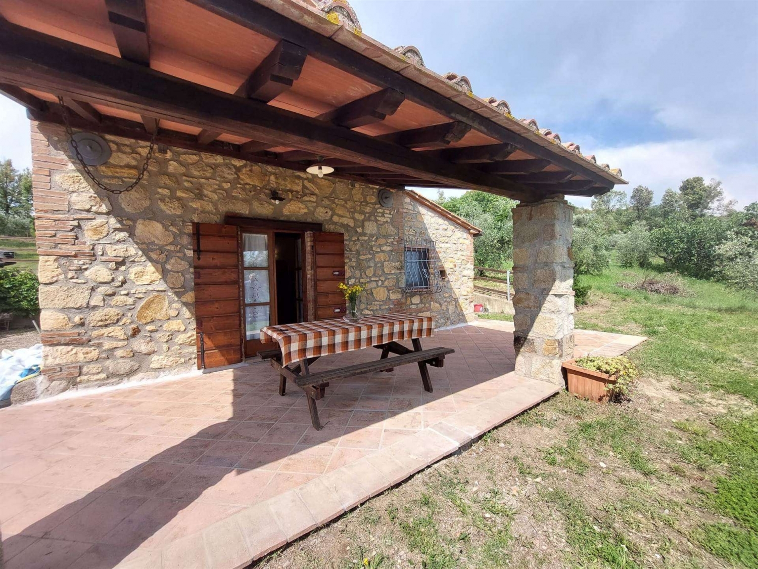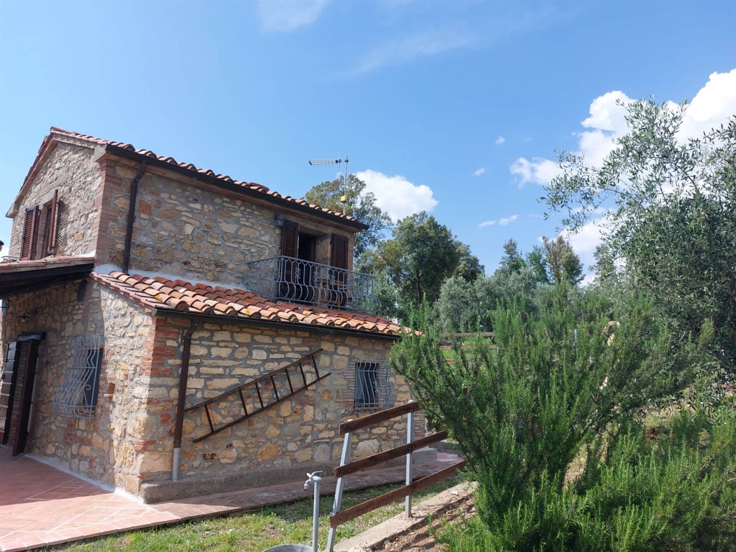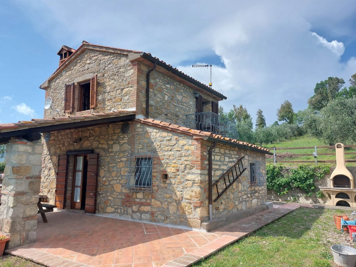 Completamente in pietra dal fascino toscano presentiamo un annesso agricolo di 47 più portico con possibilità di ampliamento tramite cambio di destinazione d'uso. dal cancello privato si accede alla proprietà di circa 2ha , con oliveto ben tenuto ed in produzione .la piccola dimora ci accoglie nel porticato .a travi x godere di una vista rilassante la casa si sviluppa su due livelli al piano terra cucinotto , sala con particolari di faccia vista e bagno .tramite una bella scala in legno e ferro si sale al piano superiore dove troviamo la camera spaziosa con un balcone molto intimo. Bella costruzione con rifiniture tipiche delle case antiche toscane..riscaldamento con pompa di calore e predisposizione presenti i termosifoni per l'allaccio al metano .la proprietà può essere ampliata cambiando destinazione d uso zona barbecue molto piacevole con bella vista classe energetica: g