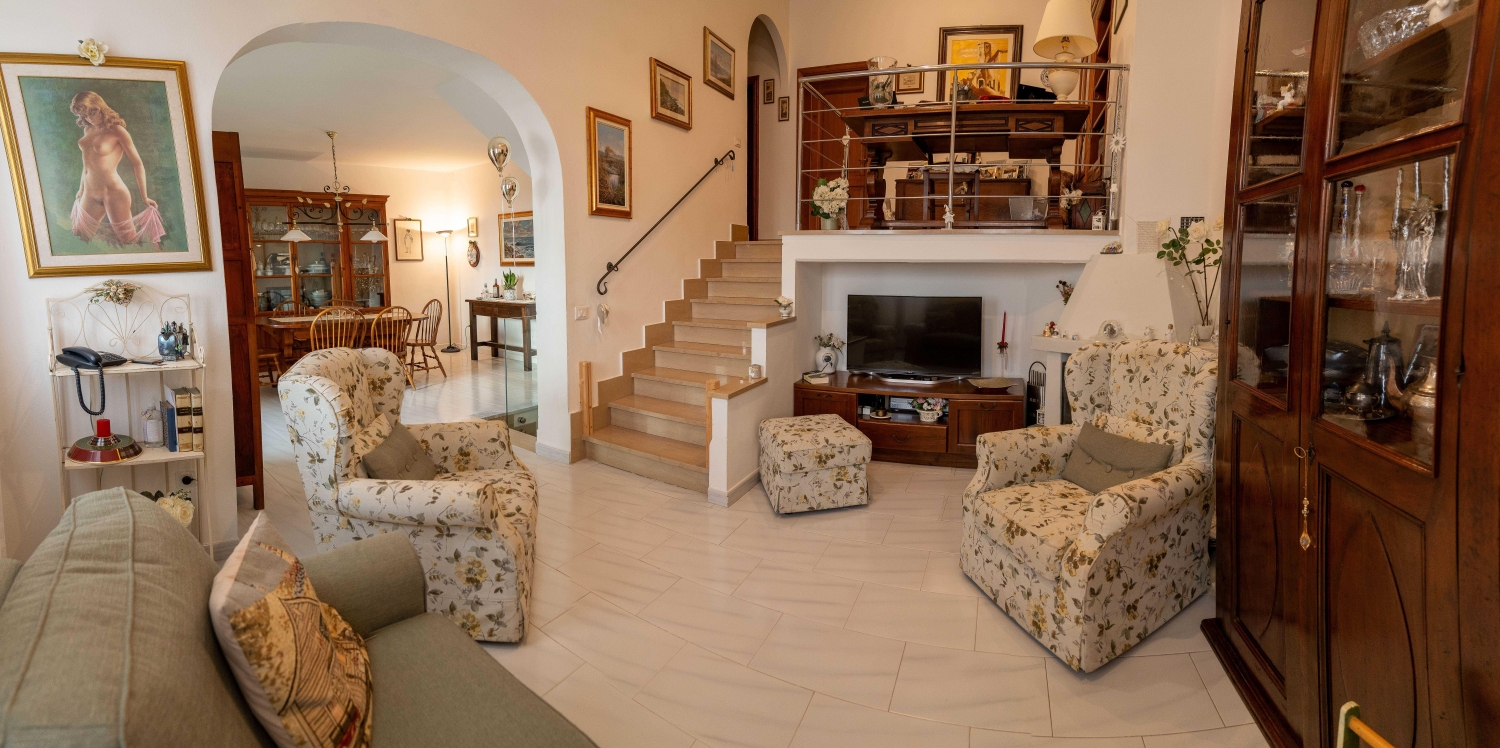 Rif: cin-02 - bibbona. In collaborazione con altra agenzia della provincia, cinzia amelia viviani è lieta di proporre in vendita: splendido appartamento (tipologia terratetto) che si estende per 190 mq di superficie e disposto su tre livelli abitativi. Facente parte di una schiera di quattro unità immobiliari, caratterizzato un doppio ingresso indipendente (pedonale e carrabile) giungiamo all'interno dell'abitazione dove troviamo entrando sulla destra un vano adibito a studio o piccolo salottino di circa 10 mq. Salendo qualche gradino, giungiamo al piano living in openspace, dove sulla destra con un divisorio in vetro ci accoglie la zona pranzo, cucinotto (privo di piano cottura con fuochi ma con induzione) con un'ampia superficie finestrata da cui possiamo apprezzare una stupenda vista mare; sulla sinistra rispetto alla scala il salotto con un 'caloroso' camino; la superficie totale di questo livello si sviluppa per oltre 45 mq, saliamo ancora di qualche gradino e troviamo nella zona notte, uno spazio anch'esso adibito a studio, due camere da letto e il bagno. Completa l'ultimo livello mansardato con tetto coibentato (altezza da ml 2,40 a ml 3,00) dove in 18 mq trova posto la terza camera (matrimoniale). Dal piano terra (ingresso) invece, da scala interna, scendiamo al livello inferiore, dove oltre ad un bagno, abbiamo taverna rustica e in stile toscano di circa 20 mq, con altro camino, e un vano ora adibito a camera. completano la proprietà due lotti di giardino di circa 100mq (totali) suddivisi in due parti (anteriore e tergale). Quella sul retro ha una migliore esposizione solare, ha più verde (alberi da frutto) e spazi attrezzati per relax (barbecue in muratura, tavolo, ombrellone ecc.) e porticato. Dal giardino anteriore si accede al posto auto scoperto e alla rimessa di 18 mq, munita di serranda basculante, e collegata internamente all'abitazione. Abitabilità nel 1992, dal 2006 gli attuali proprietari. Le facciate e cornicioni (protetti con scossoline in metallo) del tetto ripristinati nel 2024 ; infissi interni in legno di iroco e pvc termici con doppi vetri. Presenti condizionatori. Addolcitore e caldaia a condensazione nuovi. Impianto elettrico partizionato. Termo camino. Nessuna forma di condominio. Ottimo stato di manutenzione, cura dei particolari, possibilità di vivere in totale autonomia, ambienti accoglienti ed eleganti anche per il tipo degli arredi presenti.