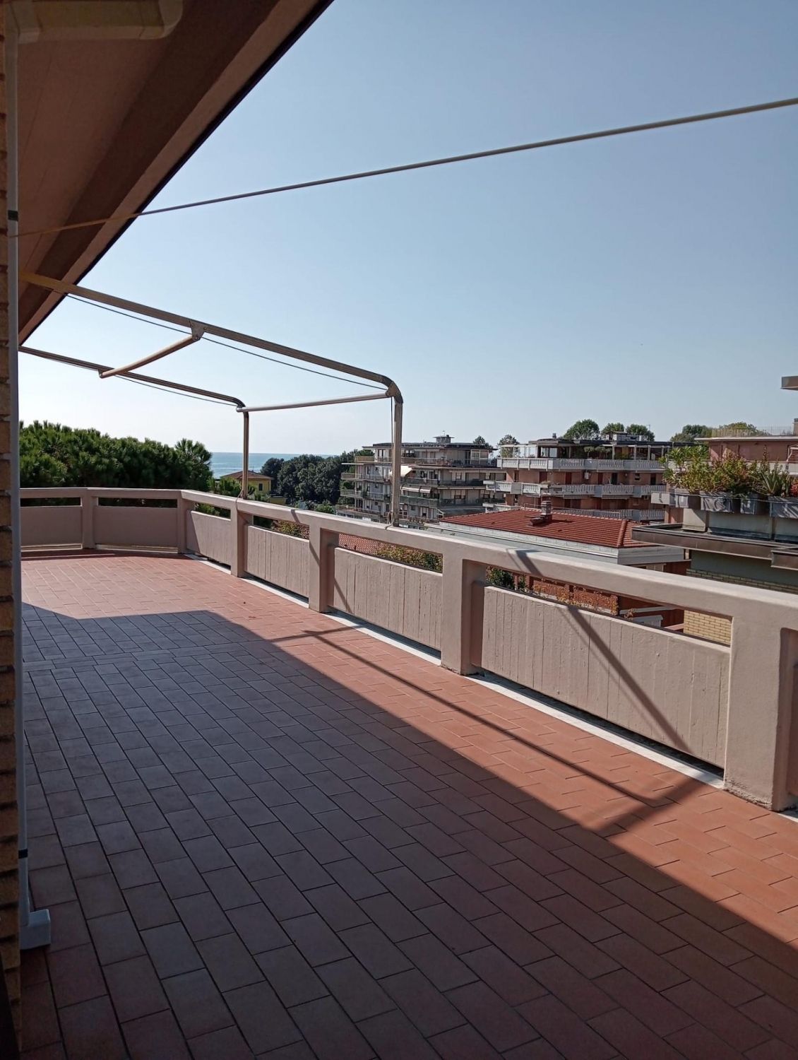 Rif: vendesi attico con vista panoramica mare e alpi apuane a 250 metri dal mare in località ronchi (ms).l'immobile si trova all'ultimo piano di un conominio signorile, quasi esclusivamente abitato da villeggianti estivi, con ascensore e scale in marmo. L'appartamento si compone di ingresso, cucina abitabile, sala soggiorno, camera da letto, cameretta, bagno per una superficie totale di circa 70 mq e l'ampia terrazza sviluppata su 3 lati di 83 mq dalla quale si gode di un'incredibile vista sul panorama montuoso sopra massa da un lato e sul mare dall'altro. Di pertinenza dell'immobile un garage sotterraneo di 25 mq con ingresso condominiale. É inoltre presente un giardino condominiale chiuso adibito a parcheggio, dove tra l'altro sono collocati i cassonetti per i rifiuti. Altre caratteristiche di rilievo: portone blindato, riscaldamento autonomo, ampio armadio a muro nella camera, due tendoni avvolgibili elettrici in terrazzo e un piccolo sgabuzzino. Sul lato più nascosto del terrazzo, è presente una doccia all'aperto di enorme praticità, specialmente al ritorno dalla spiaggia.
