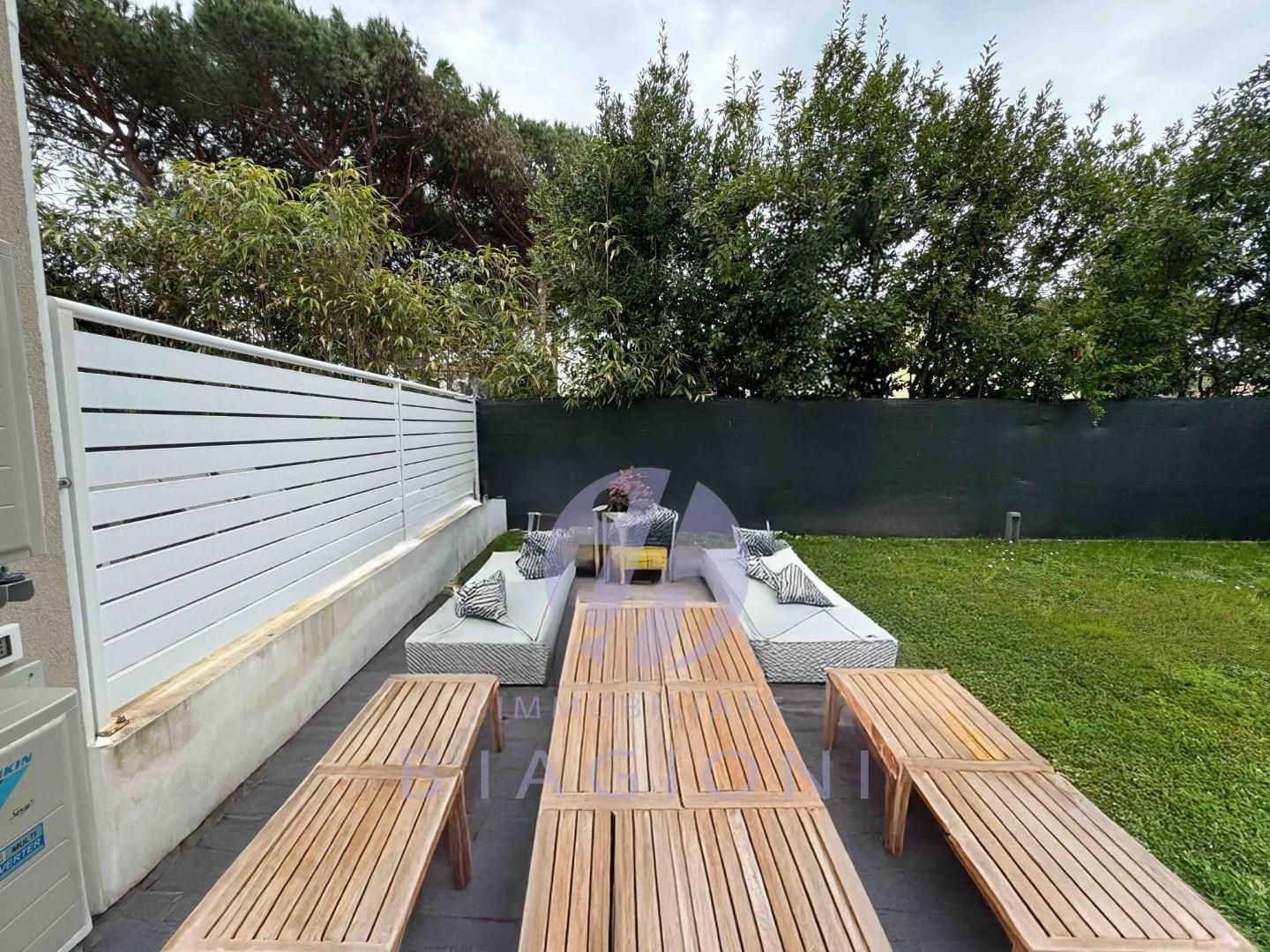 Rif: cinquale, sul confine con vittoria apuana, vicinissimo al cuore pulsante della località balneare e non lontano dal mare, proponiamo in locazione appartamento al piano terra in palazzina di recente costruzione ,con giardino privato e posti auto. Disposto su un unico piano, internamente è composto da ingresso su soggiorno con zona pranzo, cucina abitabile con accesso diretto alla veranda esterna completamente attrezzata per passare piacevoli momenti all'aperto, due camere matrimoniali di cui una con bagno privato, altro bagno con doccia. L'immobile è completo di impianto di aria condizionata, allarme, wi-fi, videosorveglianza, tre posti auto interni alla proprietà.**l'immobiliare biagioni nasce nell' 2000 in versilia, a marina di pietrasanta. Con più di 20 anni di esperienza accumulati nella vendita di immobili, facendo la conoscenza di clienti con le più diverse esigenze e priorità, oggi la nostra conoscenza del territorio ci dà modo di poter offrire al nostro cliente una visione completa di tutto il mercato della versilia.