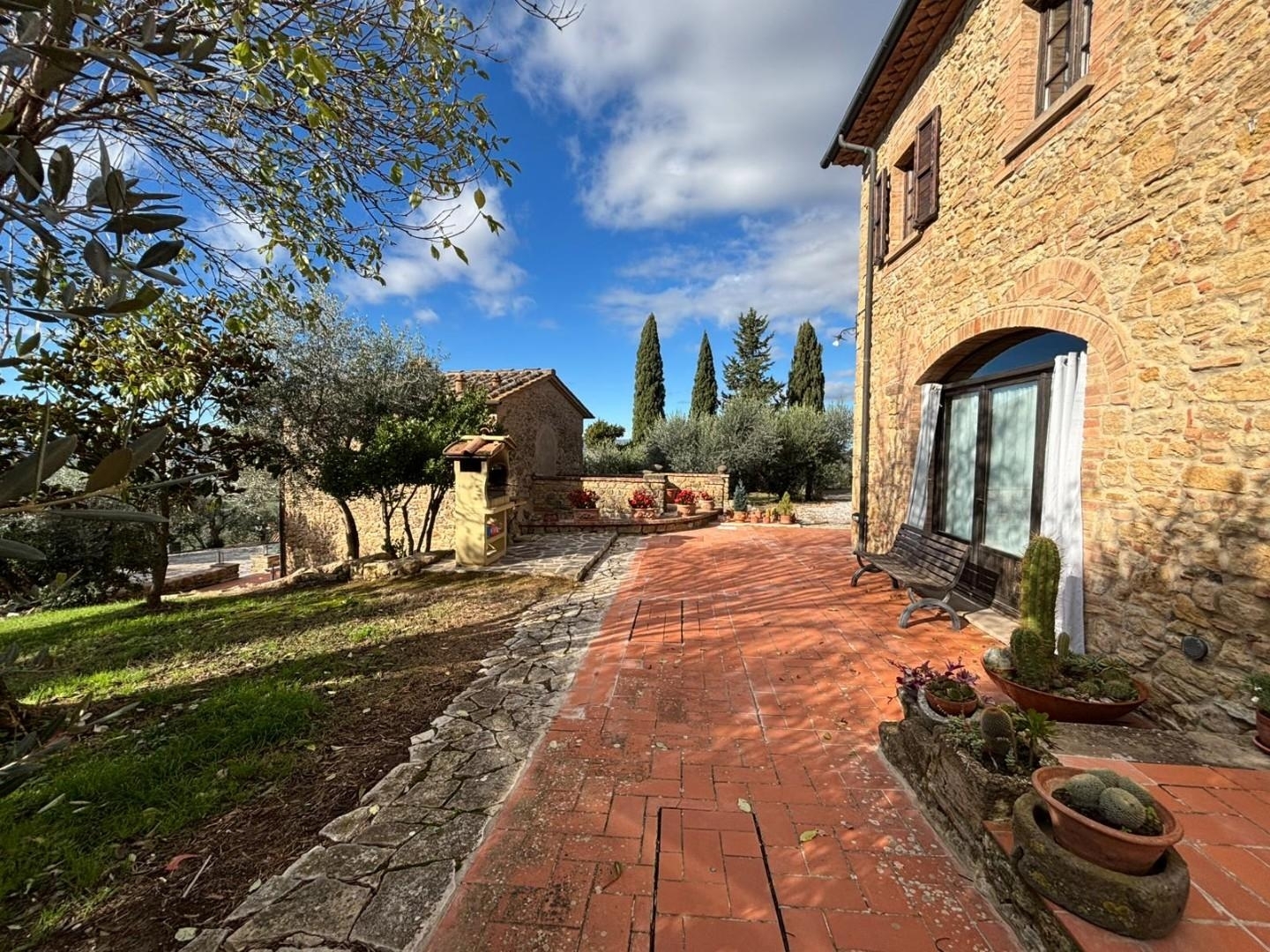 Rif: ljd6055 - straordinario casale ubicato in una delle più celebri città, quella di volterra. La proprietà si affaccia su un paesaggio magnifico, disegnato dalle linee morbide delle dolci colline toscane, la cui bellezza e fertilità si devono alla perfetta armonia in cui convivono agricoltura, natura e cultura. è in questa terra che si inserisce il bellissimo casale in vendita, un complesso tipicamente toscano realizzato in pietra sapientemente ristrutturato per esaltare il suo carattere autentico. I soffitti variano tra volte in mattoni, travi a vista e strutture in legno, mentre i pavimenti alternano cotto antico e parquet pregiato. Il complesso si compone della villa principale e di un caratteristico fienile. Il casale ha uno stile architettonico tipico toscano, con massicce pareti in pietra in cui ogni particolare è curato con grande attenzione. Infatti, gli edifici sono stati sottoposti a un attento restauro, che rispettando la tradizione ha saputo valorizzare tutti gli elementi storici e tradizionali, pur introducendo tocchi dal design moderno. I soffitti variano tra volte in mattoni, travi a vista e strutture in legno, mentre i pavimenti alternano cotto antico e parquet pregiato. Il camino crea un perfetto equilibrio tra passato e presente. L'illuminazione, studiata nei minimi dettagli, valorizza e amplifica gli spazi grazie anche alla presenza delle pareti chiare. Tutto intorno, 6500 mq di verde offrono spazi esterni perfettamente tenuti in cui rilassarsi e godersi la vista aperta su uno dei paesaggi più belli della toscana. La tranquillità del contesto garantisce un'esperienza abitativa esclusiva, in perfetto equilibrio tra natura e comfort. Questa dimora toscana ha una superficie interna complessiva di circa 380 mq dislocati su due livelli l'ampia metratura della proprietà si distribuisce su due edifici indipendenti, ognuno pensato per garantire ambienti accoglienti, luminosi e perfettamente organizzati. La villa padronale si sviluppa su due livelli e accoglie gli ospiti con un salone doppio, dove il soggiorno con camino crea un'atmosfera calda e raffinata. La zona giorno si completa con una luminosa sala da pranzo e una cucina separata. Al piano terra si trova inoltre un locale ufficio adibito ad una palestra, un bagno, un'ulteriore cucina/dispensa e un locale lavanderia. Dal piano terra si accede direttamente alla bellissima area barbeque con tettoia dove poter trascorrere momenti conviviali. Una caratteristica scala di design ci conduce alla zona notte dove ospita due camere da letto soppalcate con cabina armadio una delle quali con bagno en-suite, una camera matrimoniale ed ulteriore camera al momento adibita a studio ed un bagno con vasca e doccia. A pochi passi, il fienile di circa 60 mq si distingue per il suo carattere unico e affascinante. Open-space con cucina perfettamente attrezzata. La zona notte è composta da una camera da letto e un bagno elegante, caratterizzato da materiali naturali e finiture di qualità. All'esterno, un incantevole spazio offre pranzi e cene all'aria aperta, permettendo di vivere appieno l'atmosfera magica della campagna toscana. All'esterno, la proprietà si apre su un paesaggio incantevole: da una parte giardini curati, piante di olivi e cipressi creano un'atmosfera raffinata e accogliente, dall'altra il cortile, che collega armoniosamente le strutture, enfatizzando la sensazione di borgo privato immerso nella rigogliosa vegetazione. Un'oasi di pace dove il tempo sembra rallentare e ogni angolo racconta una storia di tradizione e bellezza, un rifugio esclusivo nel cuore di volterra.