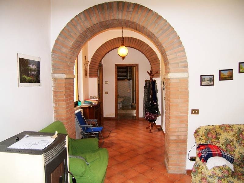 Vendesi bifamiliare suddivisa in due appartamenti con terreno di pertinenza di mq. 5000 ad uliveto in produzione.appartamento a (piano terra): mq. 38 con garage e cantina composto da ingresso, disimpegno, salotto, camera e giardino privato. Riscaldamento a g.p.l., energia elettrica e acqua comunale. A.p.e. Classe f.appartamento b (primo piano): mq. 113 con garage e cantina di mq. 40, composto da ingresso, salotto con balcone, sala da pranzo con balcone, cucina, 2 bagni, 3 camere da letto di cui una con balcone, disimpegno e ripostiglio. Riscaldamento a g.p.l. Acqua comunale e pozzo artesiano in comune con l'altro appartamento. A.p.e. Classe en. F. La vendita viene fatta a corpo. Classe energetica: f