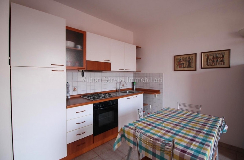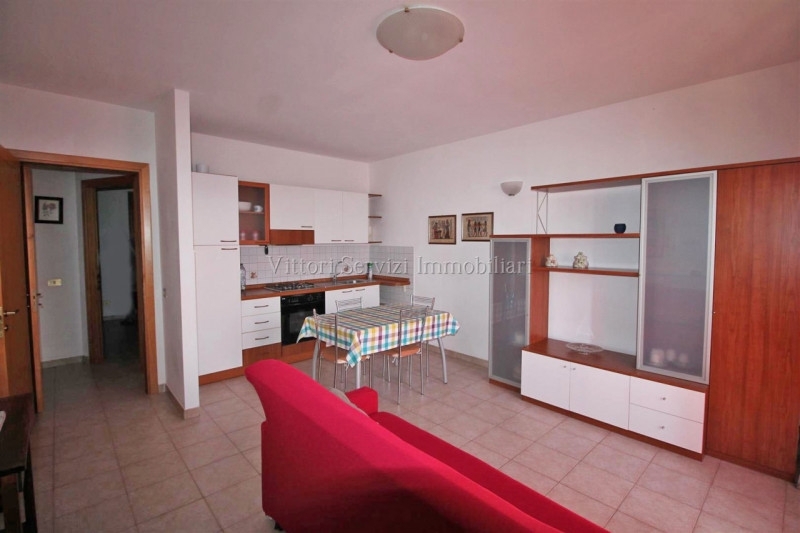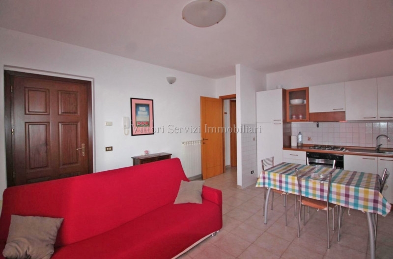In zona residenziale di recente realizzazione, si propone la vendita di appartamento di mq. 55, completamente arredato ed accessoriato, posto al piano secondo con ingresso autonomo dal piano terreno mediante scala privata, corredato di ampio garage di mq. 30 e posto auto privato. L'abitazione si compone internamente di soggiorno-pranzo con angolo cottura, camera matrimoniale, bagno finestrato con doccia e due terrazze panoramiche per complessivi mq.10. La proprietà dispone di riscaldamento autonomo a metano e si trova in ottimo stato di manutenzione generale. Contesto molto tranquillo e vicino a tutti i servizi. Nessuna spesa di gestione condominiale. Subito disponibile. L'agenzia dispone direttamente delle chiavi per le visite.