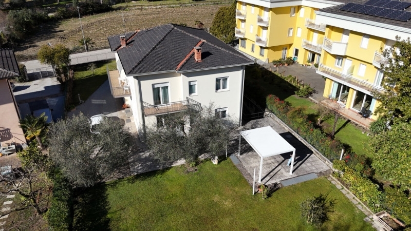 In un contesto residenziale tranquillo, alle porte del centro di arco, proponiamo in vendita una villa indipendente circondata da un ampio giardino privato.l'accesso alla proprietà avviene tramite cancello scorrevole che conduce al cortile e alla rampa di ingresso al garage. Proseguendo verso il lato est della villa si apre il grande giardino, impreziosito da ulivi e da una siepe che circonda l'intera proprietà, garantendo riservatezza e privacy. Nel verde trova spazio anche un elegante gazebo bianco, ideale per godere delle giornate primaverili ed estive all'ombra degli ulivi.l'immobile si sviluppa su tre piani fuori terra, di cui due abitativi, ed è composto da due appartamenti distinti. L'ingresso principale si trova sul lato ovest, dove è collocato il vano scale; l'appartamento al piano terra dispone inoltre di un accesso indipendente diretto dal giardino.il piano terra ospita un trilocale composto da un ampio e luminoso soggiorno, cucina semiaperta con bancone e zona pranzo, due camere da letto di cui una matrimoniale e un bagno finestrato.al primo piano si trova invece un appartamento quadrilocale composto da soggiorno e cucina separata, entrambi con accesso al balcone, tre camere matrimoniali, di cui una con uscita su un balcone con splendida vista sul monte stivo, un bagno finestrato e un pratico ripostiglio.dal secondo piano si accede infine alla soffitta.il centro di arco, cosù come scuole e principali servizi, è raggiungibile comodamente in dieci minuti a piedi.per ulteriori informazioni contattaci allo oppure scrivici una mail a