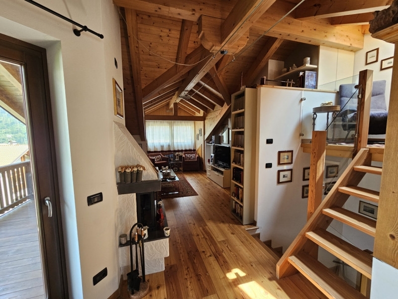 Nel cuore dell'incantevole comune di ossana, conosciuto come il paese dei presepi, proponiamo in vendita un affascinante appartamento su due livelli situato all'interno di una palazzina di recente costruzione. Questa proprietà, che offre uno spazio abitativo generoso di oltre 107 mq e spese condominiali contenute pari a soli 80 euro al mese, è l'ideale per famiglie o chi cerca ampi spazi.l'immobile dispone di un ingresso indipendente e presenta finiture eccellenti. Al primo piano troviamo tre camere da letto matrimoniali luminose e accoglienti, un elegante bagno finestrato dotato di doccia moderna. Le scale conducono al piano mansardato dove si apre un spazioso soggiorno caratterizzato da un suggestivo caminetto e un balcone panoramico sul vioz di peio perfetto per momenti convivali indimenticabili.la cucina ben attrezzata è separata ed ha accesso ad un secondo balcone dove poter godere della vista circondata dalla natura incontaminata delle montagne circostanti. Inoltre, vi è anche un ulteriore bagno completo sempre dotato di doccia.un angolo lettura rende questo ambiente ancora più speciale; ideale per rilassarsi dopo una giornata sulle piste sciistiche o trekking nei sentieri alpini vicini.completa la proposta box auto privato e posto auto esterno riservato. La proprietà beneficia del riscaldamento autonomo a gpl assicurando comfort durante tutto l'anno,e si trova in posizione centrale: comoda sia agli impianti sciistici della val sole sia ai servizi principali del paese.questa casa non rappresenta solo una residenza ma uno stile di vita immerso nella bellezza naturale trentina! contattateci oggi stesso presso la nostra agenzia per maggiori informazioni o per prenotare una visita!