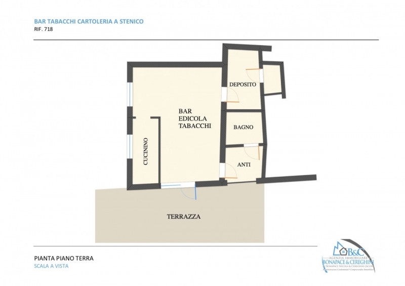 Proponiamo in vendita a stenico un'attività commerciale di bar e cartoleria, completa di licenza per la vendita di tabacchi, edicola e ricevitoria, funzionante e attiva da anni.situato nella zona centrale del paese, il bar ha costruito negli anni una clientela strutturata e una continuità lavorativa. Il locale è arredato, funzionale, ed in ottimo stato conservativo; comprende un'area dedicata al bar, cucinino, bagno e antibagno e uno spazioso ripostiglio/magazzino.è inoltre disponibile un comdo spazio esterno antistante il locale, per aggiungere valore all'offerta durante i mesi estivi. Lo spazio esterno è in locazione di lungo periodo dalla provincia di trento. viene venduta l'attività arredata e funzionante come si trova, e concesso in locazione il locale.
