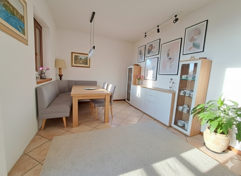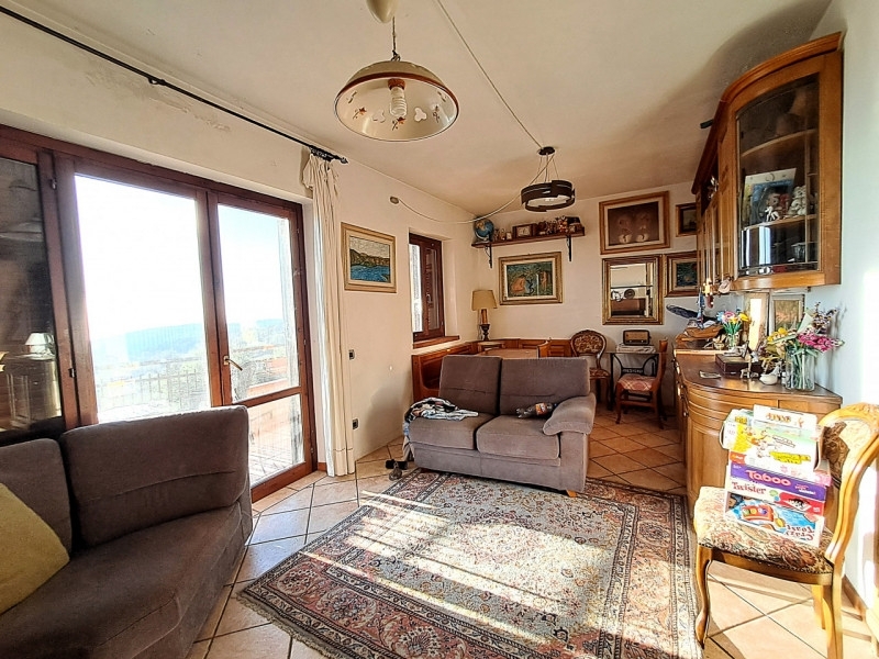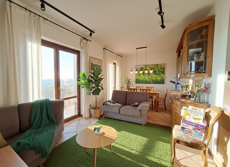 A soli dieci minuti dal vivissimo lungolago di passignano sul trasimeno, sulla suggestiva collina di castel rigone, in posizione panoramica e tranquilla, appartamento, di circa 70 mq residenziali, con ingresso indipendente situato al primo piano di un complesso residenziale composto da sole 10 unità abitative.l'accesso avviene tramite una scalinata esterna di tre rampe che conduce al ballatoio comune, dal quale si entra nell'abitazione.l'appartamento si apre su un luminoso soggiorno con cucina a vista, impreziosito da un'ampia vetrata che appena si entra regala una magnifica vista sul lago trasimeno.completano la zona giorno un grande balcone vivibile e panoramico, un camino e una stufa a pellet.la zona notte comprende disimpegno, bagno e camera matrimoniale.salendo la scala a chiocciola in legno si accede alla soffitta, attualmente adibita a camera per gli ospiti, completamente rifinita e dotata di bagno privato, e balcone vista lago.al piano seminterrato si trovano un ampio garage di circa 20 mq e un'intercapedine di circa 7 mq, ideale come spazio di servizio o deposito.al momento il gpl non è utilizzato per il riscaldamento, ma potrebbe essere ripristinato da chi acquista.nella galleria fotografica sono incluse alcune proposte di arredamento alternative rispetto a quelle attualmente presenti, utili per aiutare l'acquirente a immaginare gli spazi in modi diversi.