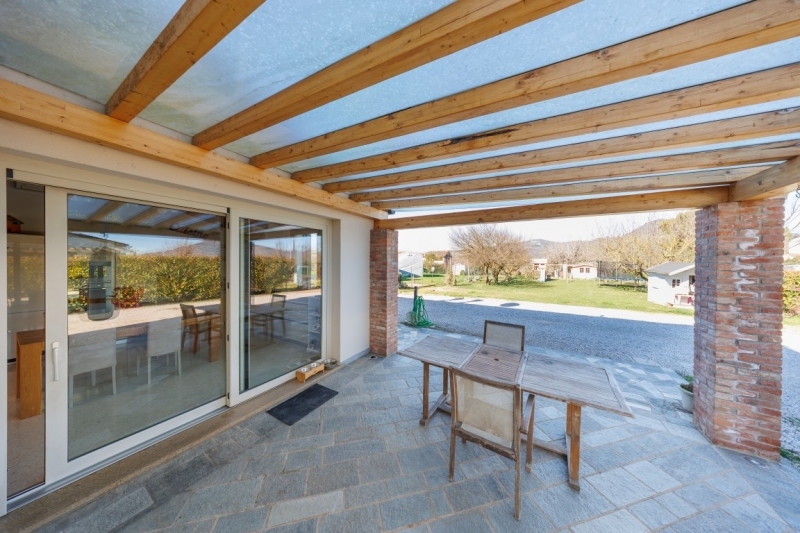 Composizione:proponiamo in vendita una bellissima bifamiliare situata a este, sviluppata su due livelli. Al piano terra, ampia zona giorno open space con cucina a vista, caratterizzata da travatura in legno e dalla vetrata d'affaccio al portico, ottimo per cene/pranzi e momenti di relax. Allo stesso livello bagno ben distribuito e funzionale. La scalinata a vista in acciaio e legno porta al piano primo, dove troviamo due camere da letto e ulteriore bagno. A completare la proprietà giardino di circa 2000 mq con stupenda vista sui colli euganei.caratteristiche:l'immobile si presenta luminoso e caratterizzato da ampi spazi esterni, con infissi in doppio vetro camera, riscaldamento a pavimento, presenza climatizzatore. Ricercate ed eleganti le finiture, dal pavimento in terrazzo alla veneziana della zona giorno alle tavole in legno di rovere della zona notte. Particolare attenzione è stata posta agli elementi isolanti sia nelle pareti che nella copertura.contesto:situata in un contesto di totale privacy e tranquillità, comoda a tutti i servizi e a due passi dal centro di este.commento:soluzione ideale per chi cerca indipendenza e comfort con bellissima vista sui colli euganei.per info e appuntamenti:dicasa agenzia immobiliare - cel