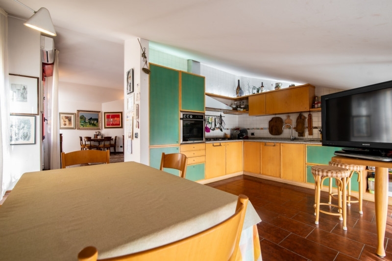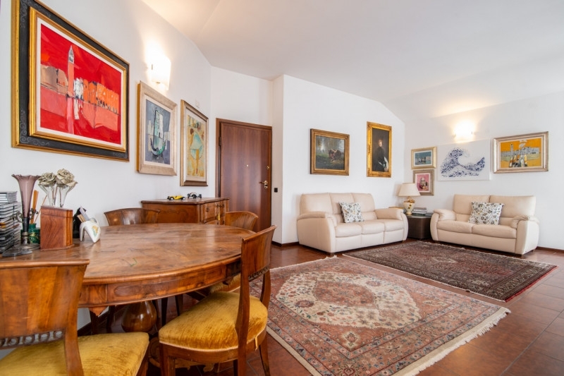 Zona centrale e molto servita, luminoso attico mansardato sviluppato su unico livello al piano quarto, servito da ascensore.la zona giorno è composta da ampio soggiorno che affaccia alla terrazza solarium con splendida vista, cucina separabile, nella zona notte troviamo tre camere da letto, due bagni finestrati, ampia zona guardaroba.completano le dotazioni dell'immobile il garage e l'ampio parcheggio nell'area condominiale.arredi su misura, riscaldamento centralizzato con conta calorie, aria condizionata, serramenti con vetrocamera.