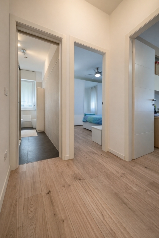 In posizione tranquilla e riservata, all'interno di una via chiusa lontana dal traffico ma a pochi passi da tutti i principali servizi, proponiamo in vendita accogliente appartamento al primo piano inserito in una palazzina signorile di sole 6 unità abitative.una soluzione ideale per chi desidera vivere in un ambiente curato, silenzioso e al tempo stesso comodo a negozi, mezzi pubblici e collegamenti principali.l'abitazione è composta da:-ingresso-luminoso soggiorno con angolo cottura- terrazzo abitabile- disimpegno notte- camera matrimoniale- camera singola- lavanderia separata -bagno finestrato con docciaal piano terra completa la proprietà un ampio garage.l'appartamento è stato completamente ristrutturato nel 2022, con rifacimento di impianti, pavimenti, serramenti, porte interne, caldaia, climatizzazione, tende da sole e portoncino blindato.lo stabile ha inoltre beneficiato degli interventi di efficientamento energetico tramite superbonus 110%.pronto da abitare, offre ambienti funzionali, ottima luminosità e bassi costi di gestione, risultando particolarmente adatto a coppie, piccoli nuclei familiari o a chi cerca una soluzione moderna in un contesto tranquillo e ben servito.un appartamento curato, efficiente e confortevole, dove entrare e sentirsi subito a casa.